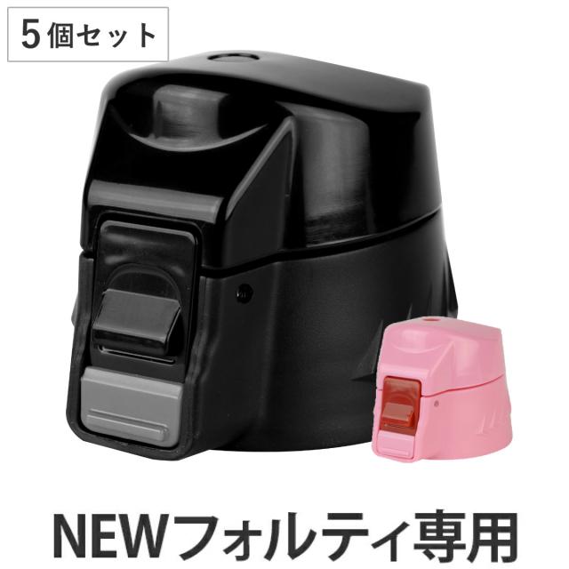 NEWフォルティ専用 キャップユニット 5個セット 水筒 蓋 パッキン付き ( パーツ キャップ 飲み口 ふた フタ 交換用 キッズ ブラック 交換 替え 買い替え スポーツ 部活 サッカー 野球 小学生 中学生 )
