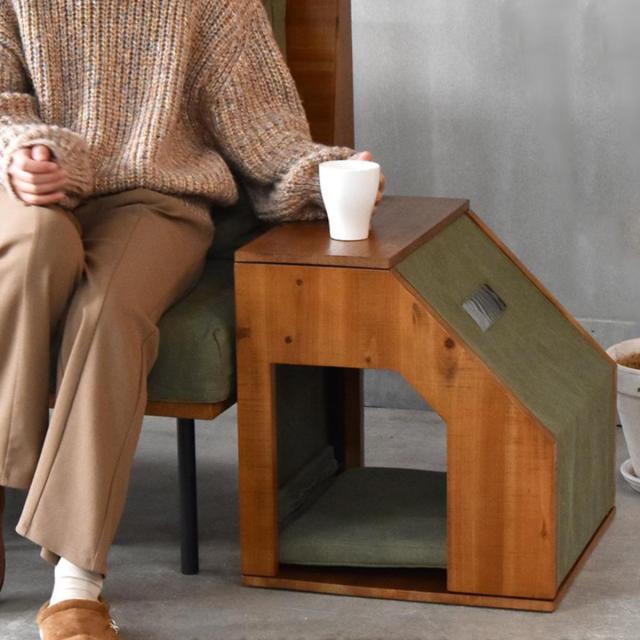 ペットハウスとしてはもちろん、サイドテーブルとしても使用可能です。おしゃれで実用的なインテリアアイテムです。