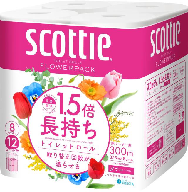 スコッティ フラワーパック 1.5倍長持ち トイレットペーパー 37.5m ダブル 8ロール 26355 スコッティ Scottie フラワーパック トイレットペーパー トイレットティシュー 1.5倍 長持ち 香り付き 長巻 ダブル