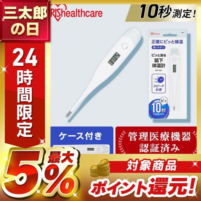 体温計 早い 予測 10秒 スピード検温 電子体温計 予測式 実測式 高精度 スピーディー 脇下体温計 デジタル コンパクト 収納ケース付 わき 脇下 家庭用 検温 体温 測定 大人 子供 医療 介護 健康管理 アイリスオーヤマ DT-701 * 【管理医療機器】