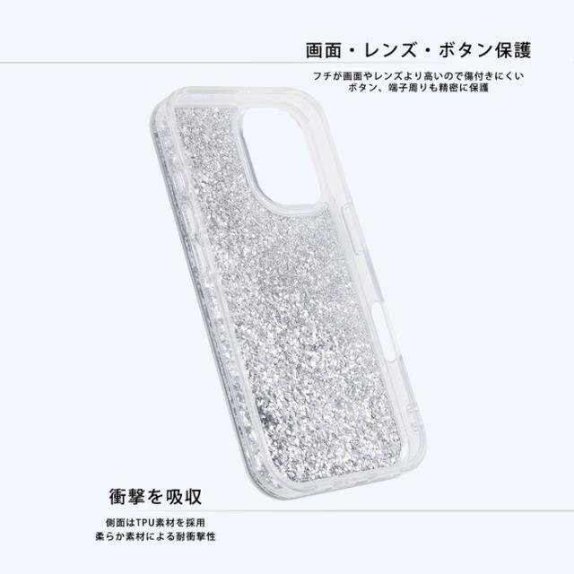 ケース全体には繊細なラメグリッターをちりばめ、光の加減でキラキラと輝く華やかさをプラス。