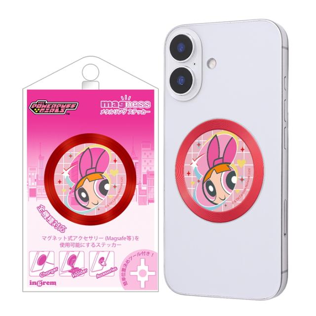 ブロッサム パワーパフガールズ マグネットシール 貼るだけ キャラクター かわいい スマホ マグネット メタルリング プレート 強力 磁石 ワイヤレス充電 変換 可愛い