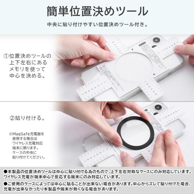 付属の専用位置決めツールを使えば、ワイヤレス充電コイルの中心に正確にステッカーを配置できます。