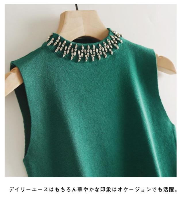 ニットタンクトップ レディース ニットトップス ノースリーブ トップス Tシャツ モックネック インナー タンク 重ね着風 レイヤードタンクトップ 見せインナー 春夏 きれいめ おしゃれ レトロ S M L XL