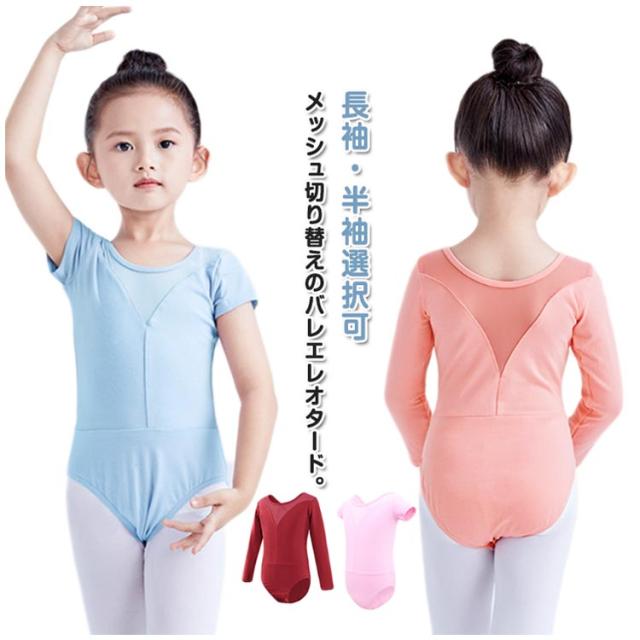 バレエ レオタード キッズ 子供 スカートなし メッシュ切り替え バレエレオタード 長袖 半袖 バレエ用品 ジュニア 女の子 コットン 綿 ストレッチ 伸縮 練習 レッスン着 新体操 レオタード 子ども こども 練習着 110 120 130 140 150 160 170 送料無料