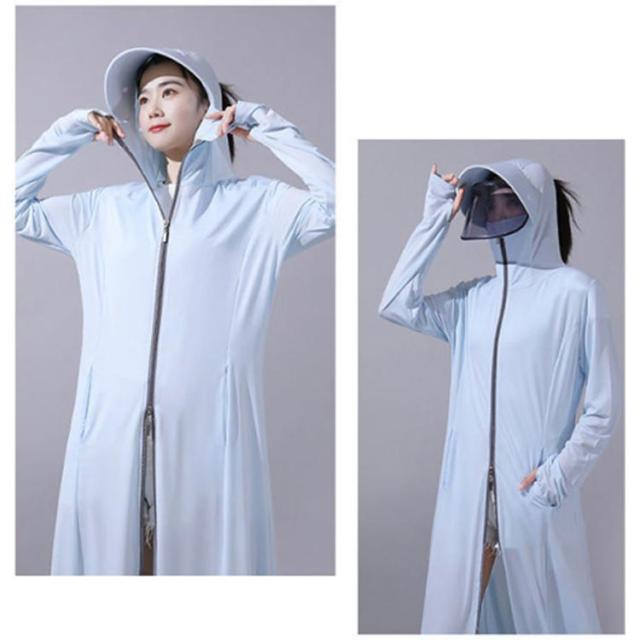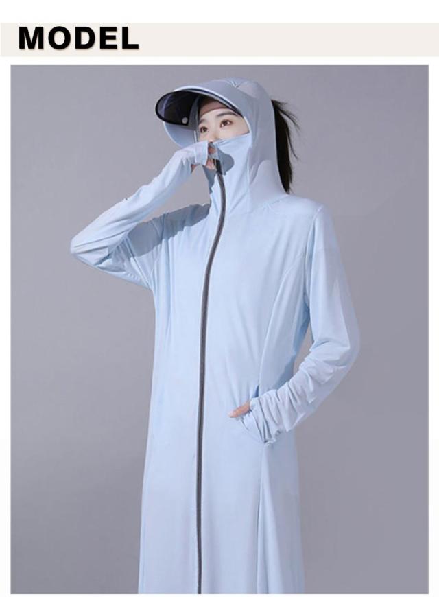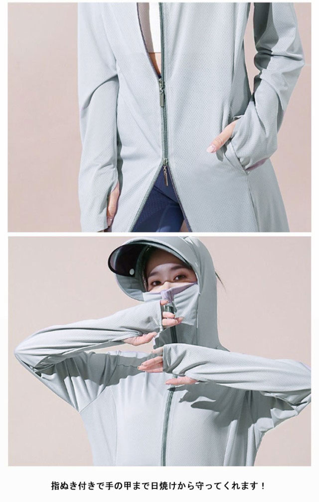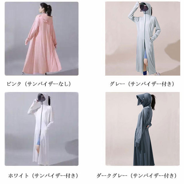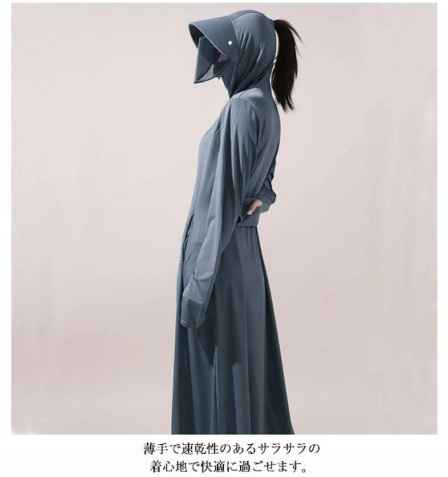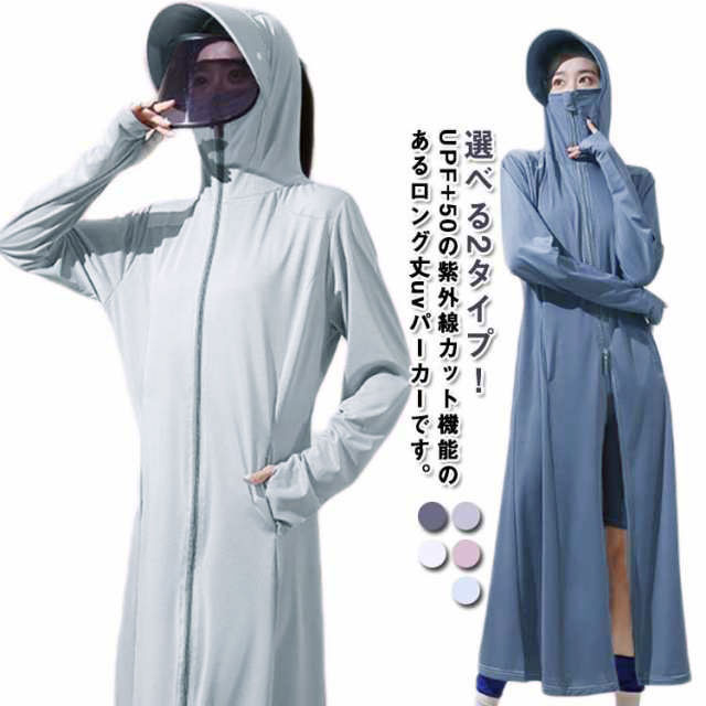uvカットパーカー 長袖 UV パーカー 接触冷感 超ロング ラッシュガード レディース ロング丈 UPF50+ 薄手 ひんやり 涼しい フード付き ロングパーカー サンバイザー付き 吸水速乾 日焼け止め 夏 体型カバー 男女兼用 紫外線対策 自転車 ハイキング 通勤 釣り 母の日