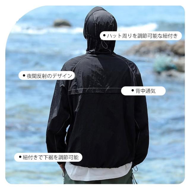 | フード付きuvカットパーカー/男女兼用/大きくつば 取り出し可能な大きくつば、uvカット効果も抜群! ファスナーを閉じると鼻まですっほり包み込み、顔・首元を紫外線からしっかり守ります。 通気性と速乾性に優れな生地を使用、汗ばむでも蒸れません。生地は防水なので、小雨が降っても大丈夫です。 ジップ付きの大きくポケット、小物収納便利。夜間反射のデザイン、夜は外出の時も安心している。 海やリゾートに行く時、水着のアウターとしてはもちろん、通勤、通学の時も日焼け対策ウェアとしてジャケットのもいいですし、寒すぎる冷房の中に必須のアウターとしても便利です。 ユニセックスデザイン男女両性に向く、7サイズご用意、ややゆったりとしたバージョンは体つきへの包容力が非常に高い。 | |