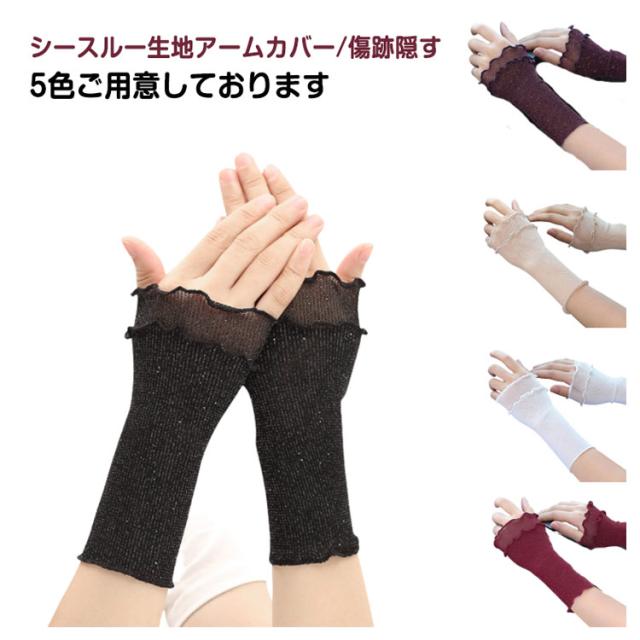 アームカバー レディース 無地 薄手 傷カバー 付け袖 UV対策 オシャレ シアーレース リストバンド傷隠し シミ隠し アームスリーブカバー 傷跡隠す 使いやすい 日よけ 重ね着 通勤 通学 運転用 衣装 仮装 舞台 パーティ— 送料無料