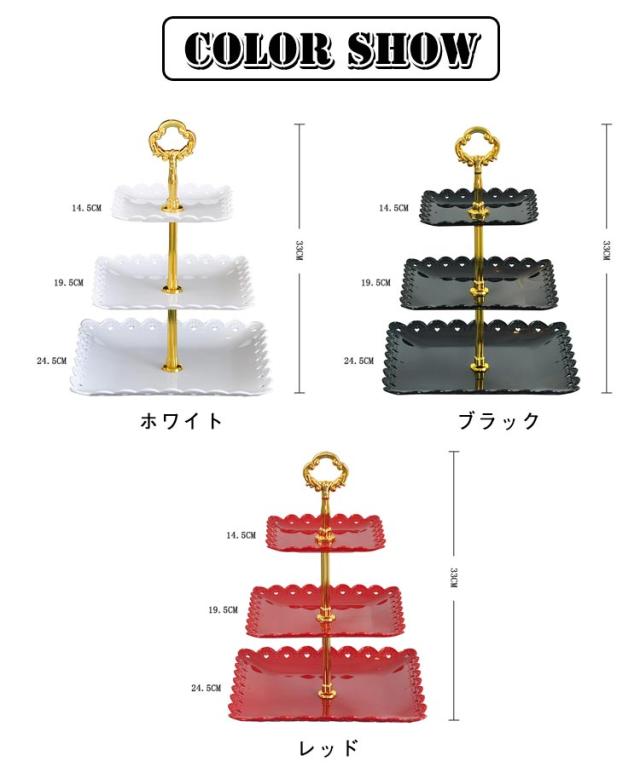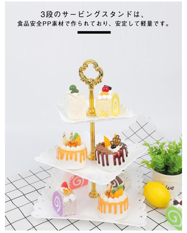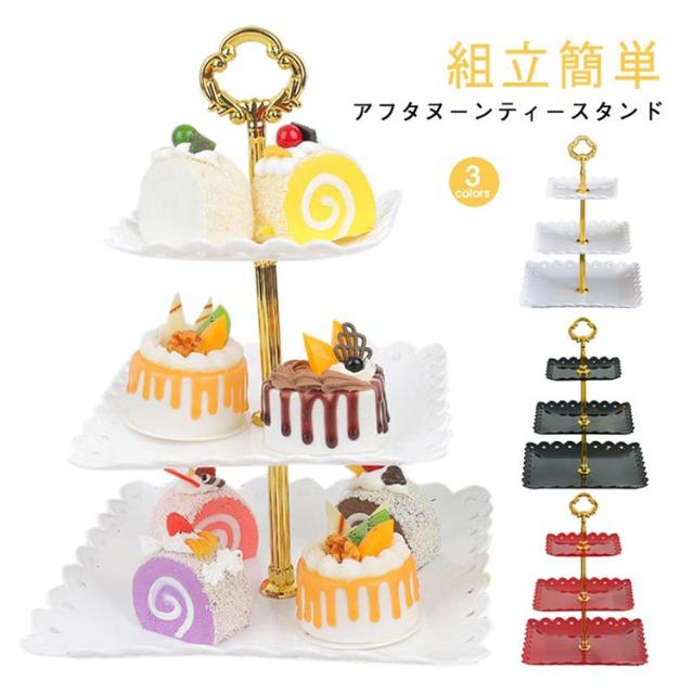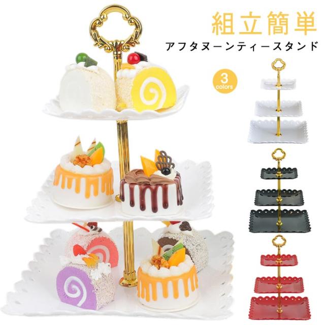 アフタヌーンティースタンド 3段 方形 組立簡単 果物皿 アフタヌーンティー スタンド ケーキスタンド 食器 デザートプレート お皿 収納 お菓子 プレートスタンド デザートプレート パーティー クリスマス 誕生日 女子会 結婚式