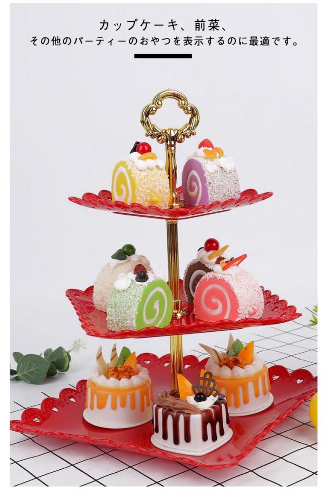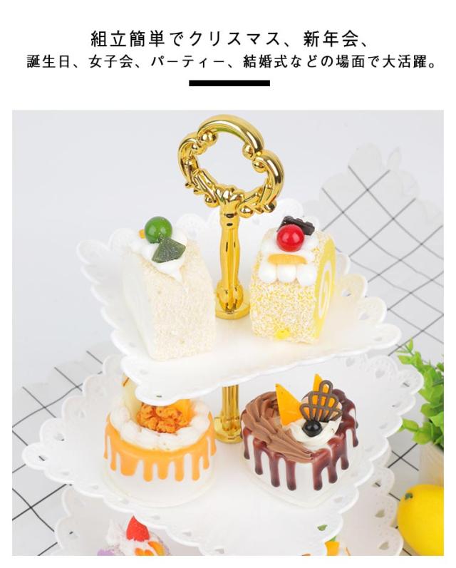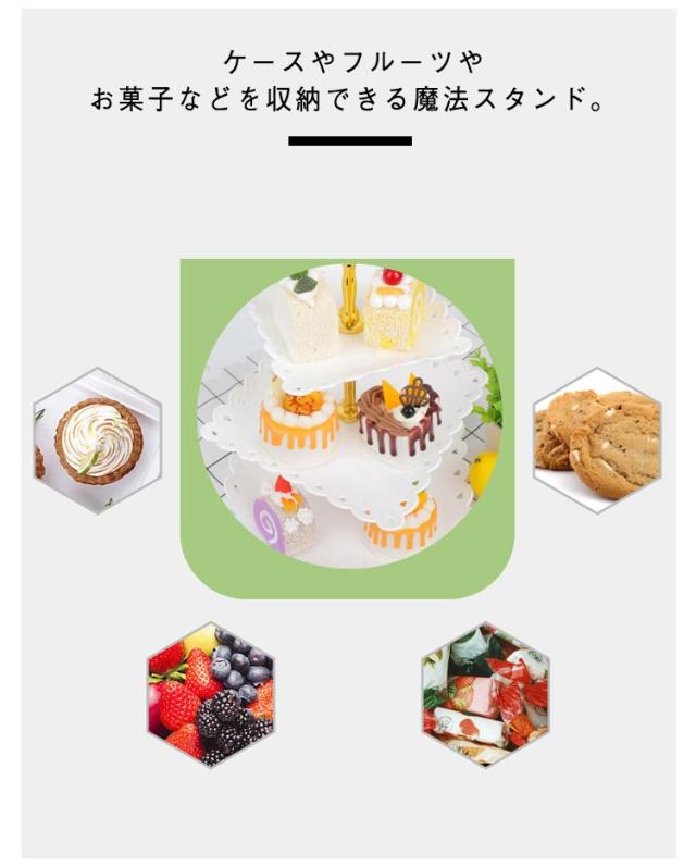 | 3段のサービングスタンドは、食品安全PP素材で作られており、安定して軽量です。 ケースやフルーツやお菓子などを収納できる魔法スタンド。 金具の取り外しも可能なので使わない時の収納にも困らず。 組立簡単でクリスマス、新年会、誕生日、女子会、パーティー、結婚式などの場面で大活躍。 カップケーキ、前菜、その他のパーティーのおやつを表示するのに最適です。 | |