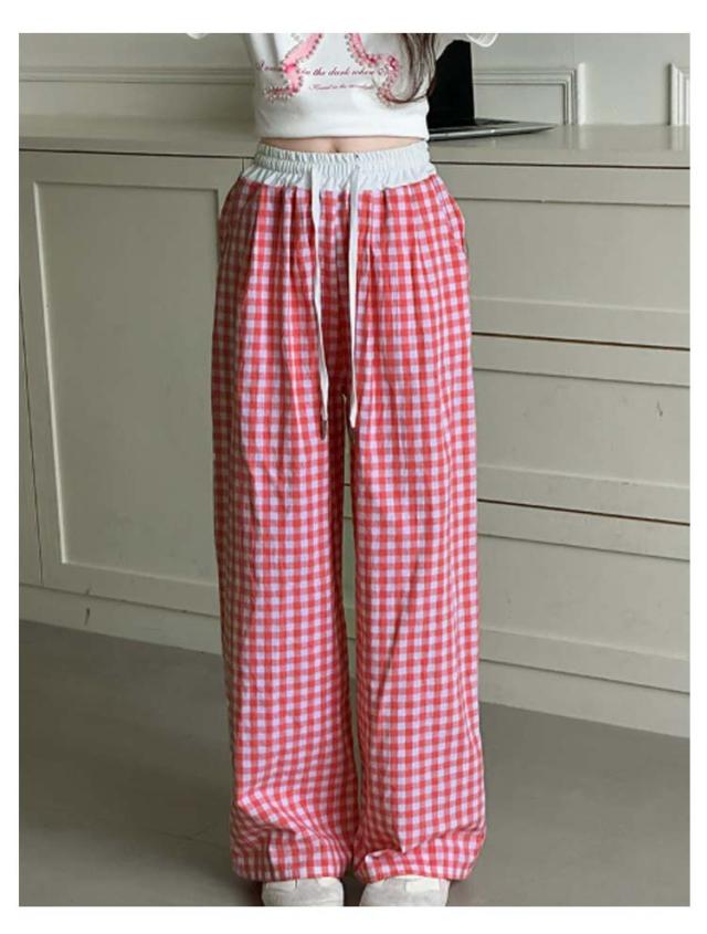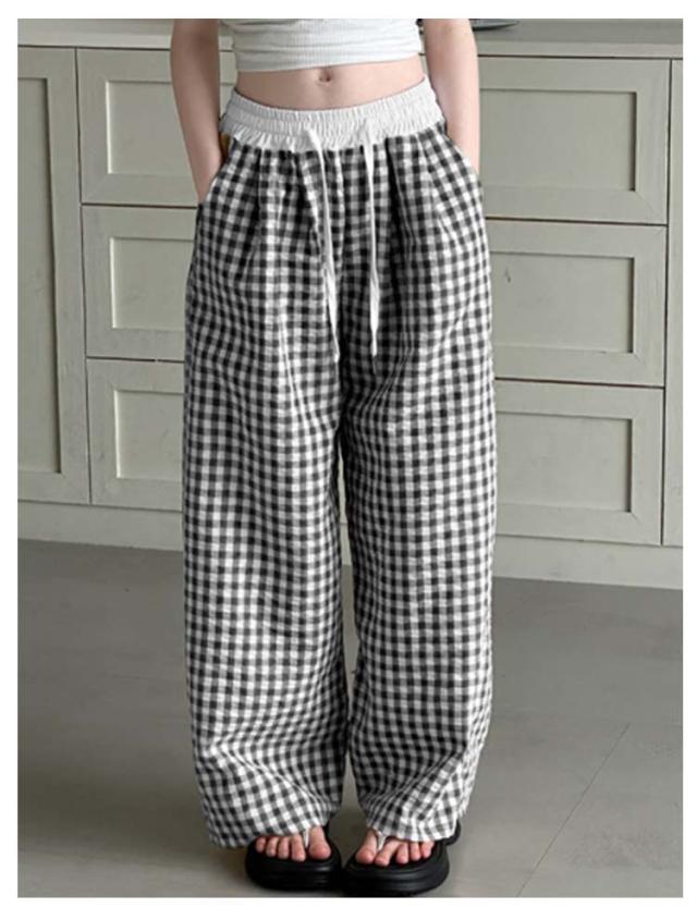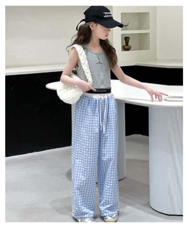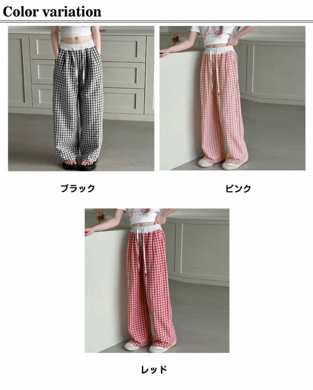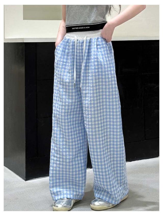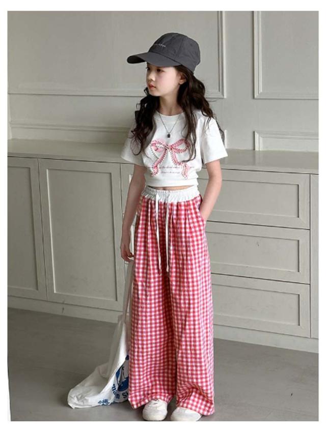 キッズ ワイドパンツ チェック柄 韓国風 ロングパンツ ウエスト 配色 可愛い 夏 蚊よけパンツ 薄手 イージーパンツ 女の子 子供服 ゆったり ガウチョパンツ 長ズボン キッズ ジュニア 女児 女子 子ども こども 通学 通園 普段着 送料無料