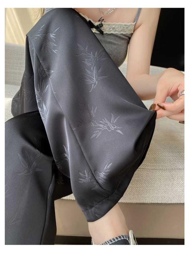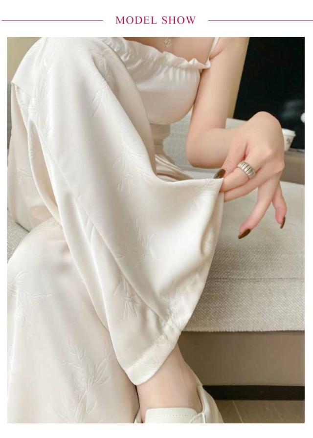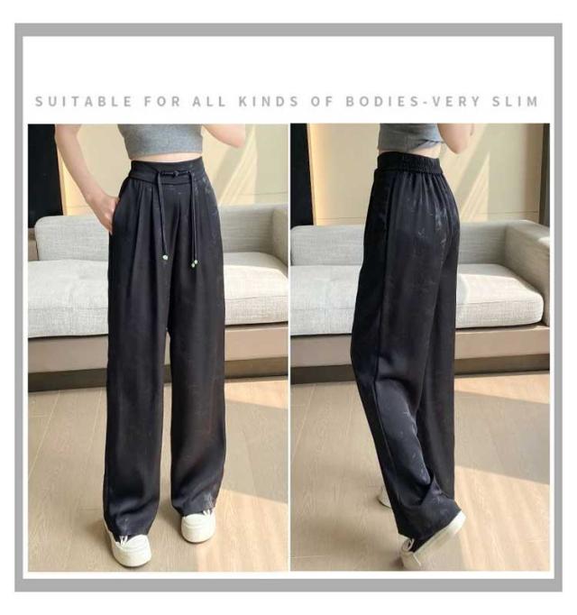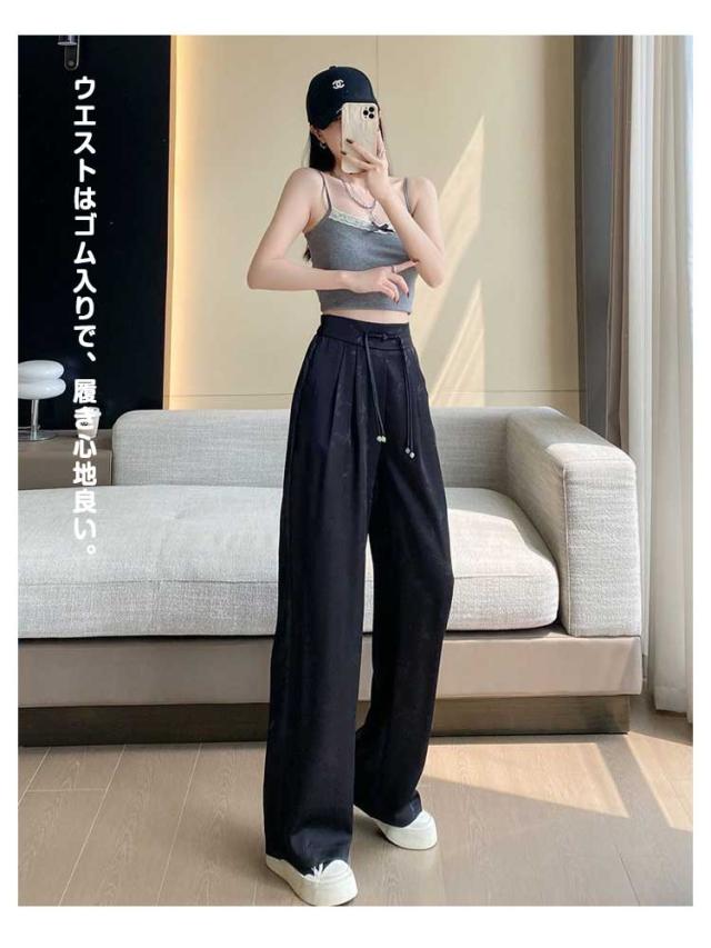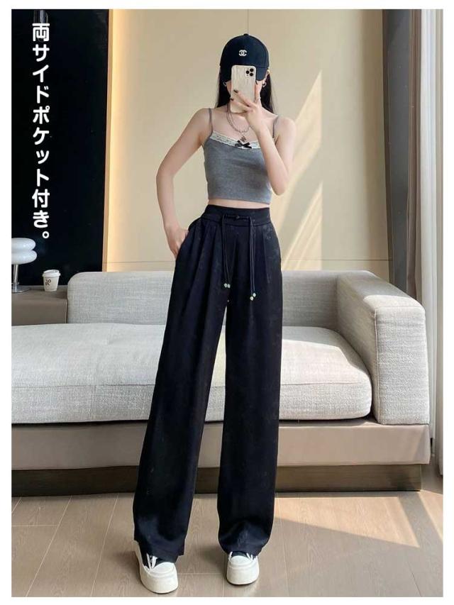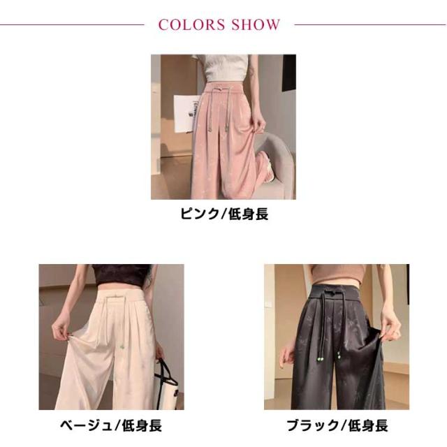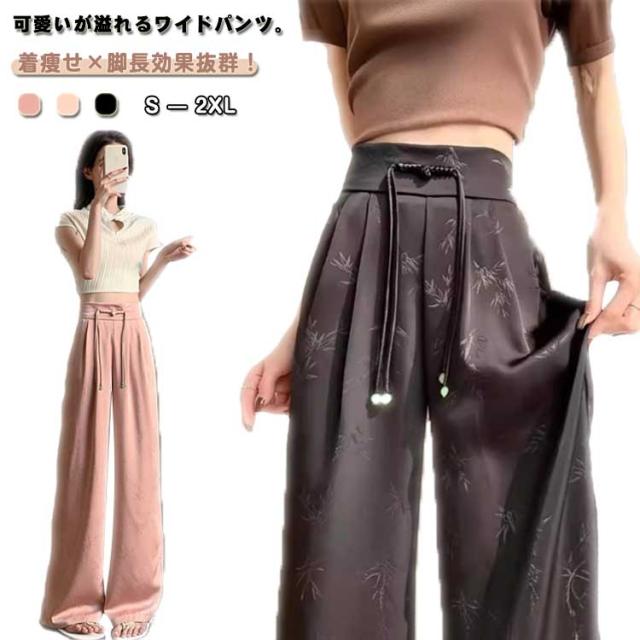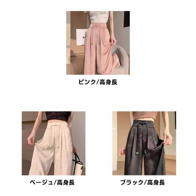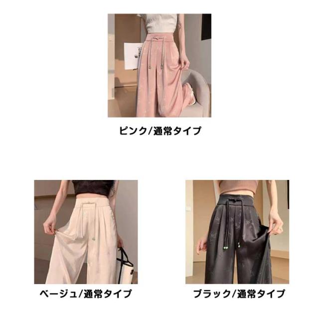 ハイウエスト 接触冷感 アイスシルク ワイドパンツ ストレッチ レディース 春夏 痩身 薄手 きれいめ ジャカード サテン 女性 ボトムス ワイドパンツ 大きいサイズ ファッション きれいめ ワイドレッグ パンツ スラックス カラーパンツ 春 夏 秋 カジュアル