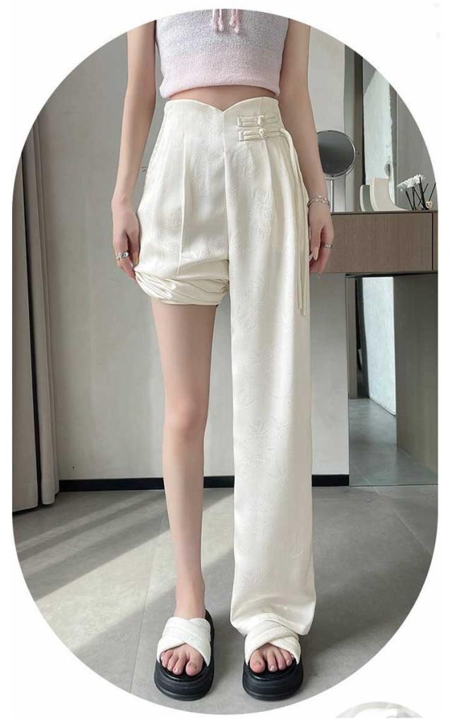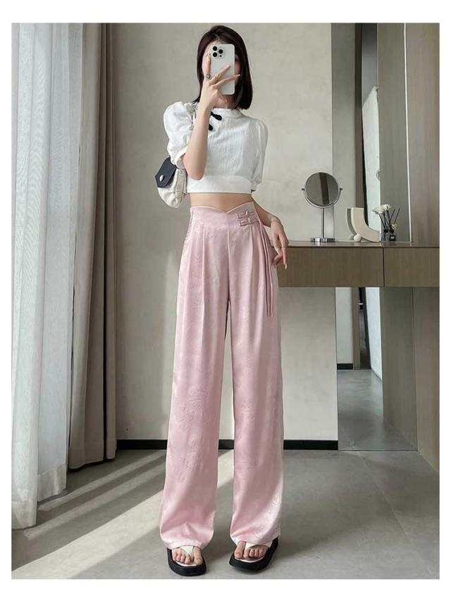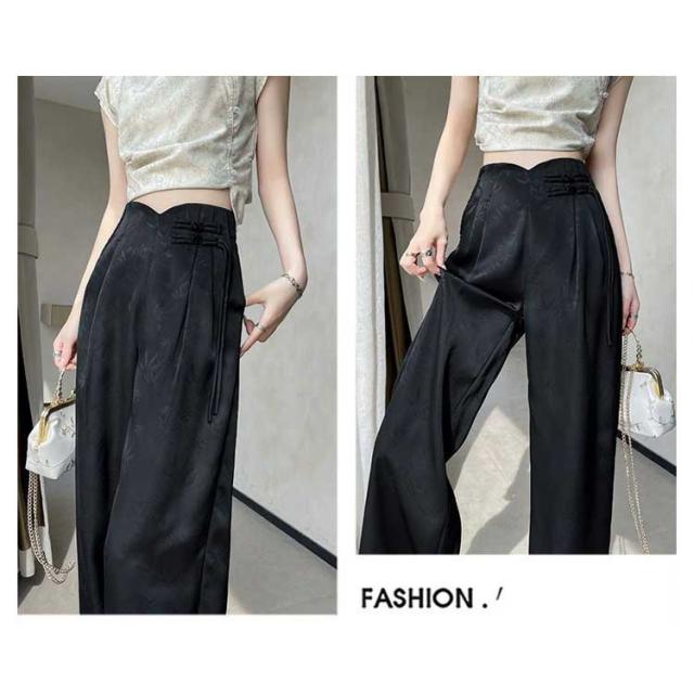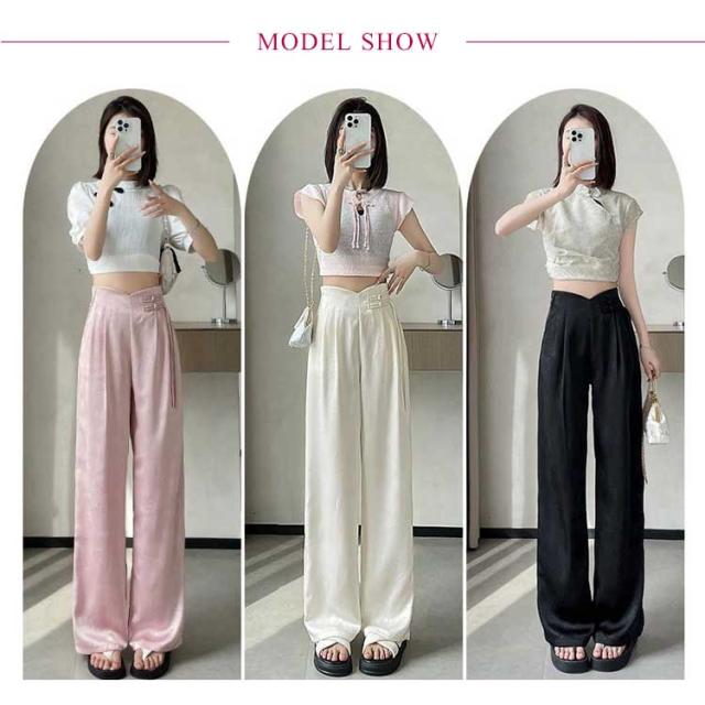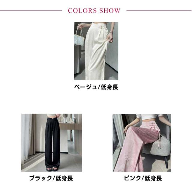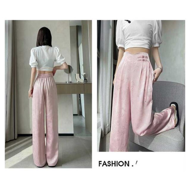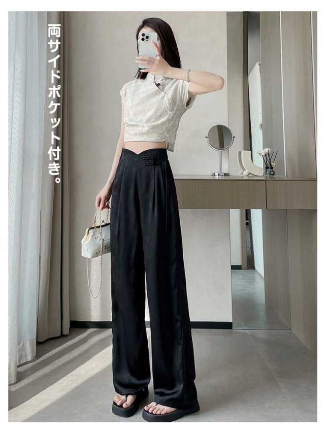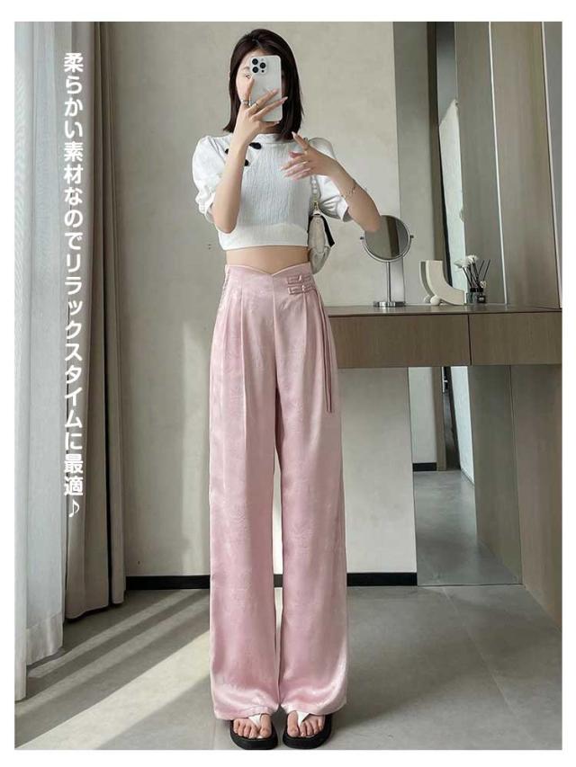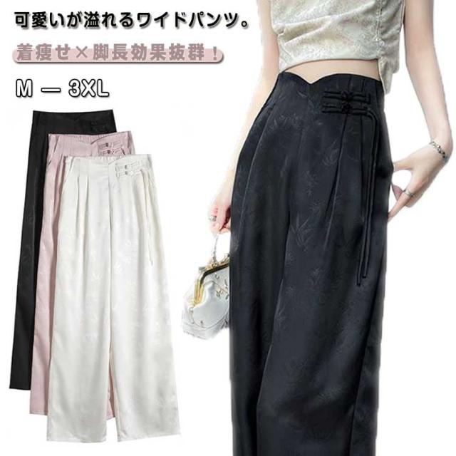 ワイドパンツ レディース きれいめ サテン ジャカード アイスシルク 春夏 薄手 きれいめ ストレッチ ハイウエスト リラックスパンツ ボトムス 女性 痩身 ファッション 大きいサイズ ワイドレッグ パンツ スラックス カラーパンツ 春 夏 秋 カジュアル ロングパンツ