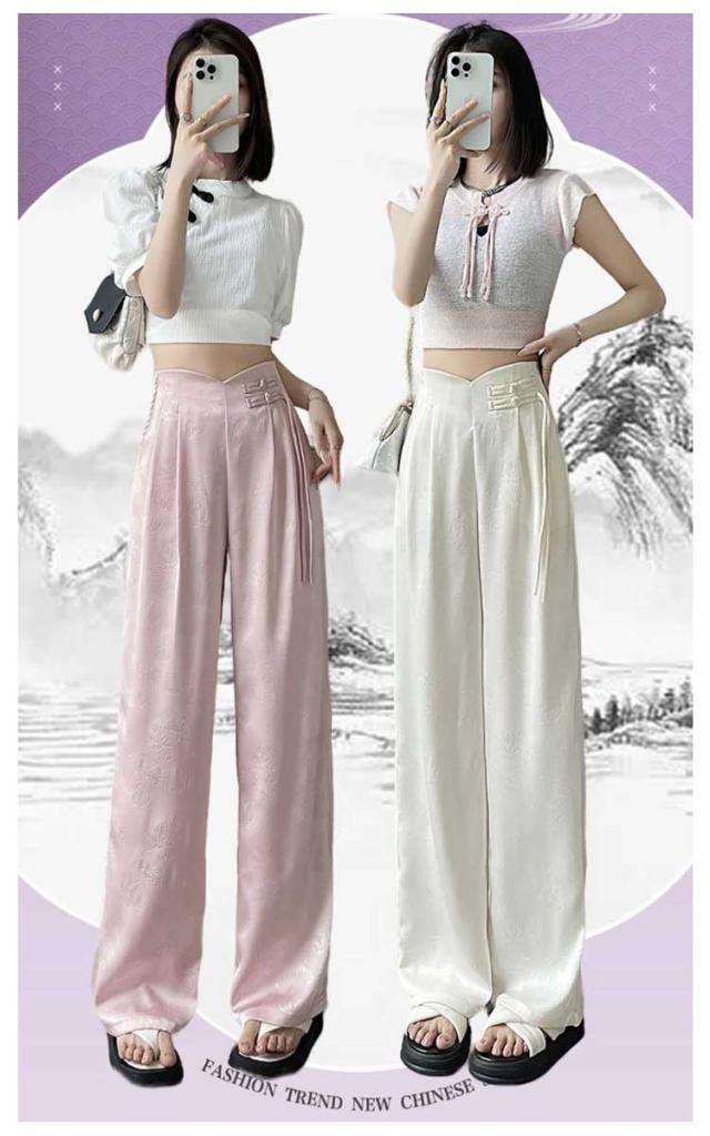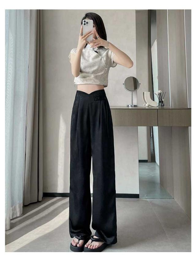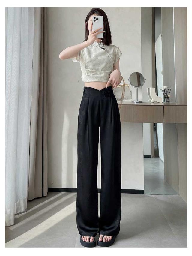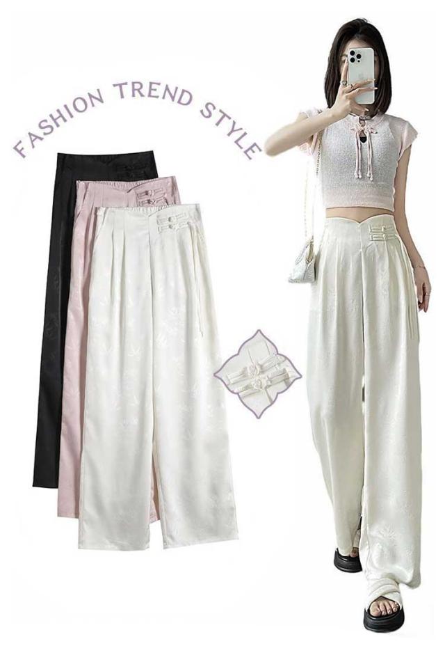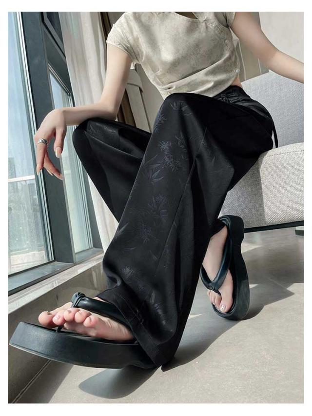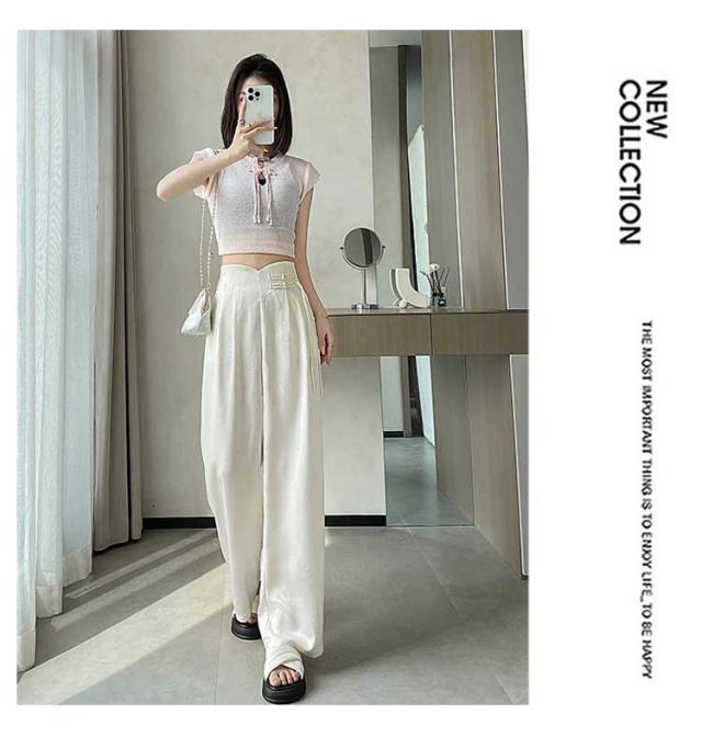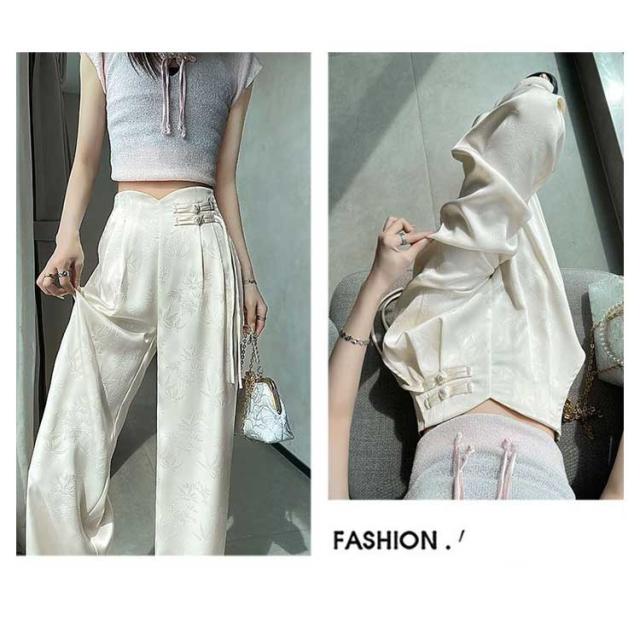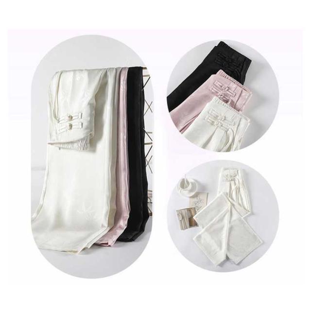 ワイドパンツ レディース きれいめ サテン ジャカード アイスシルク 春夏 薄手 きれいめ ストレッチ ハイウエスト リラックスパンツ ボトムス 女性 痩身 ファッション 大きいサイズ ワイドレッグ パンツ スラックス カラーパンツ 春 夏 秋 カジュアル ロングパンツ
