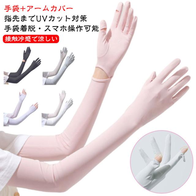 冷感 接触冷感 UV 日焼け対策 通気性 アームカバー UPF50+ 手袋 スポーツ 自転車 ゴルフ 速乾 吸汗 レディース 滑り止め アームカバー メッシュ ひんやり 指穴付き スマホ操作 ズレ落ち防止 ロング 冷感アームカバー 冷感手袋