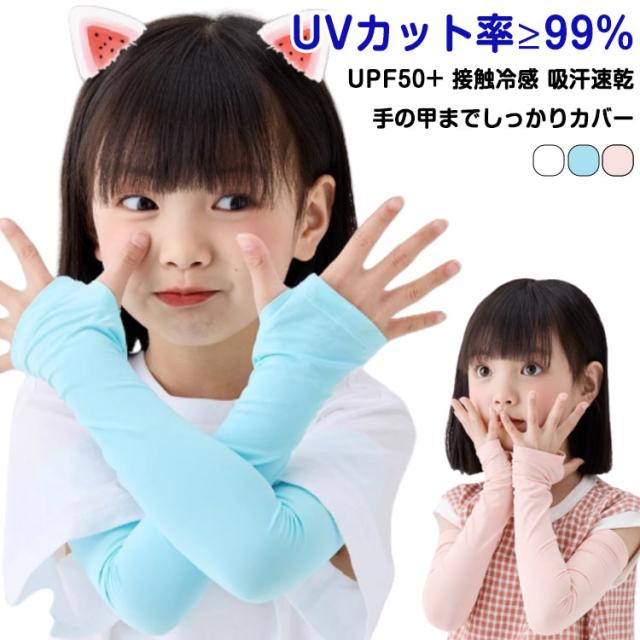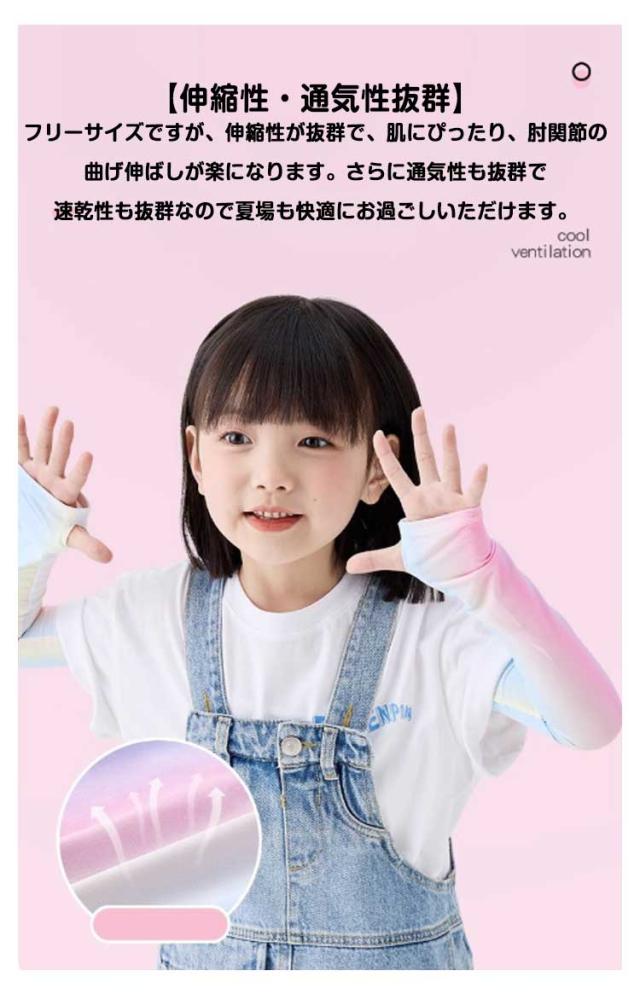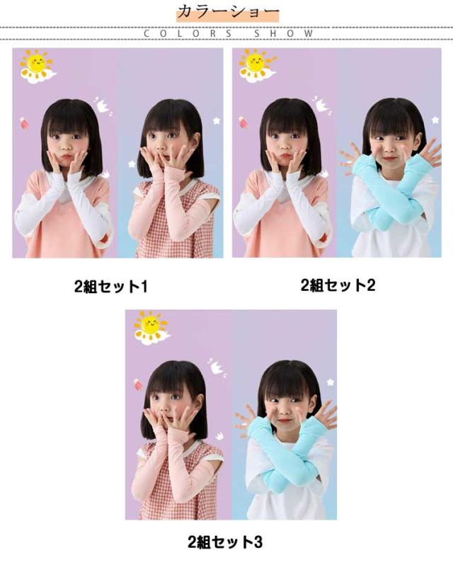 日焼け防止 冷感 子供 2組セット アームカバー 吸汗 UPF50+ 接触冷感 あり uv UVカット 速乾 保湿 UVカット率?99% キッズ 手袋 腕カバー 袖カバー 可愛い おしゃれ ロング丈 指穴 2組セット 女の子 男の子 UV手袋 スポーツ