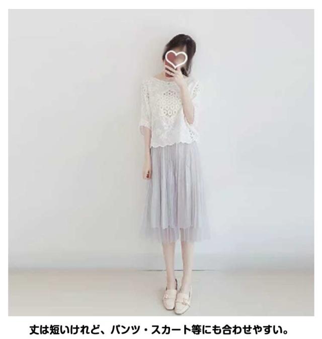 | 毎日違う!インナーを変えるだけテンション変わるブラウス 涼しげで可愛らしい。ウエスト周りのカバーにもいい。 レースコットン素材は肌さわりともいい感じ。 丈は短いけれど、パンツ・スカート等にも合わせやすい。 ドルマン袖は動きやすく、肘が隠れないくらいの長さ。 年齢にこだわりなく幅広く着られるレーストップス | |