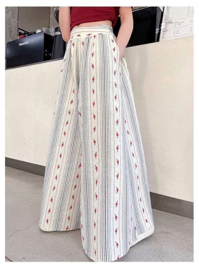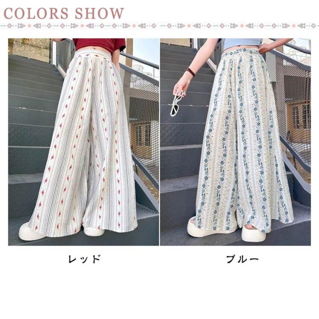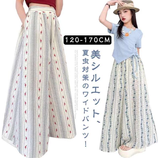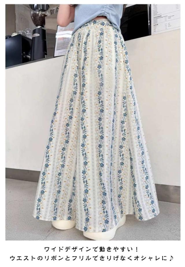 | 美シルエット、夏虫対策のワイドパンツ! ワイドデザインで動きやすい!ウエストのリボンとフリルでさりげなくオシャレに♪ 太めのデザインなので立ったりしゃがんだりもラクラク! サラッとした涼しい生地で春〜夏にかけてピッタリな肌触りです! | |