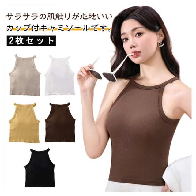 カップ付きキャミソール リブ ブラトップ カップ付 ナイトブラ ブラキャミ おしゃれ インナー レディース ノンワイヤー カップ付き キャミブラ リブ ルームウェア 2枚セット パッド付き 伸縮性 キャミ 無地 速乾 ストレッチ 2枚セット 通気性 締め付けない 肌着
