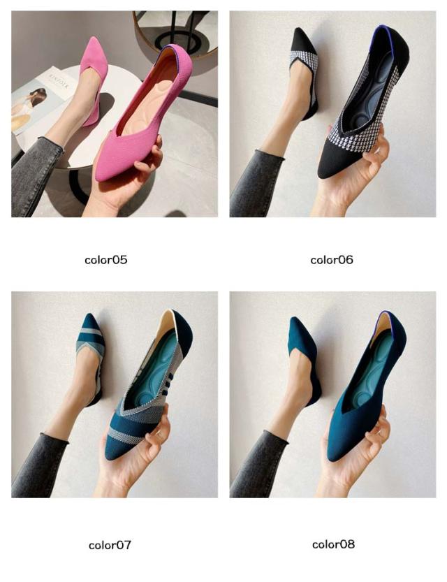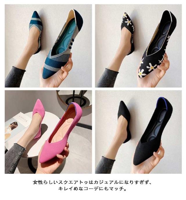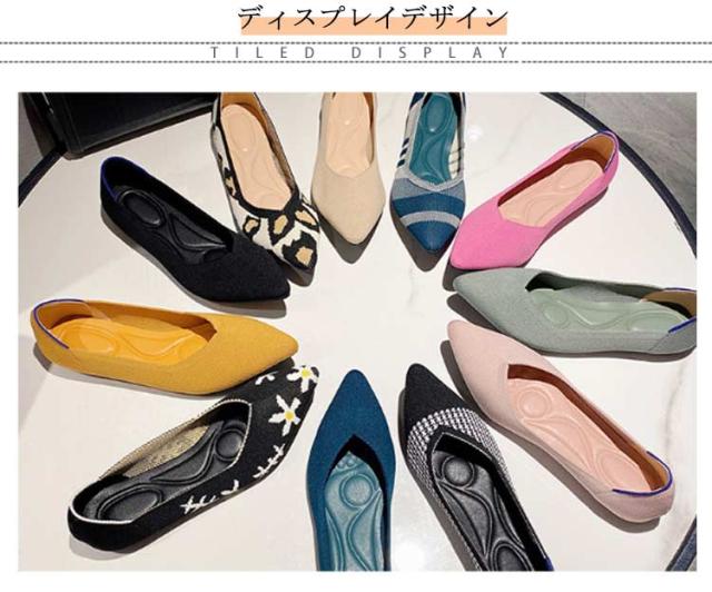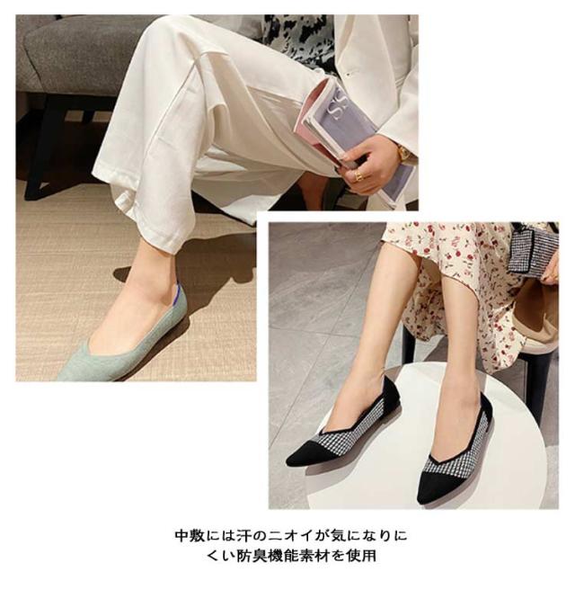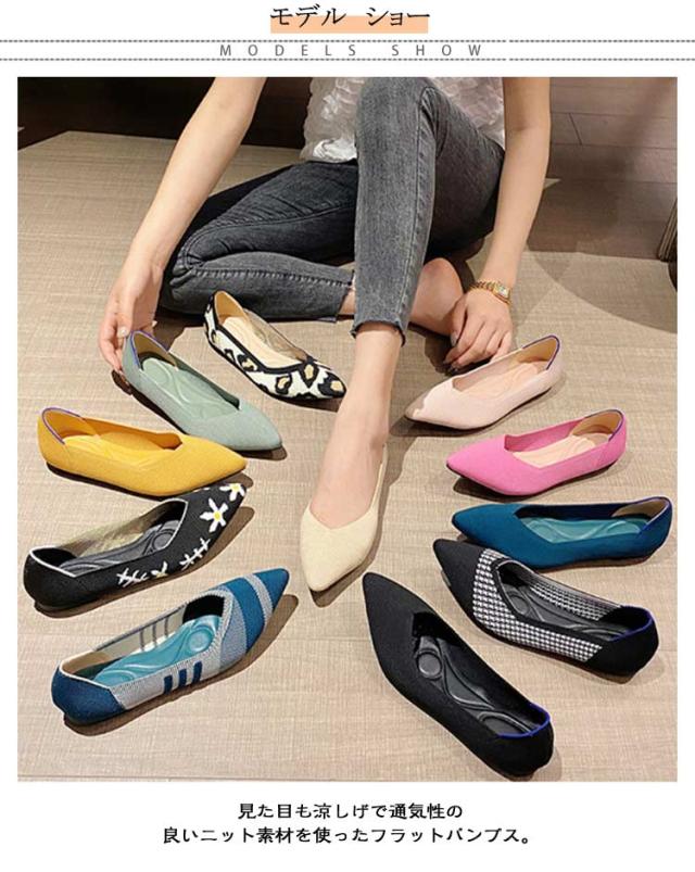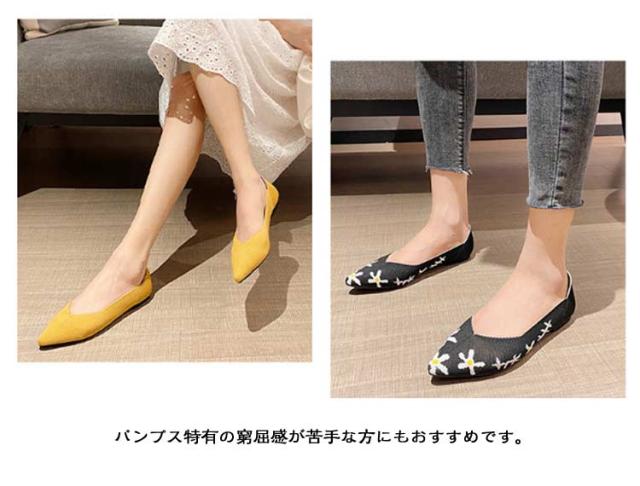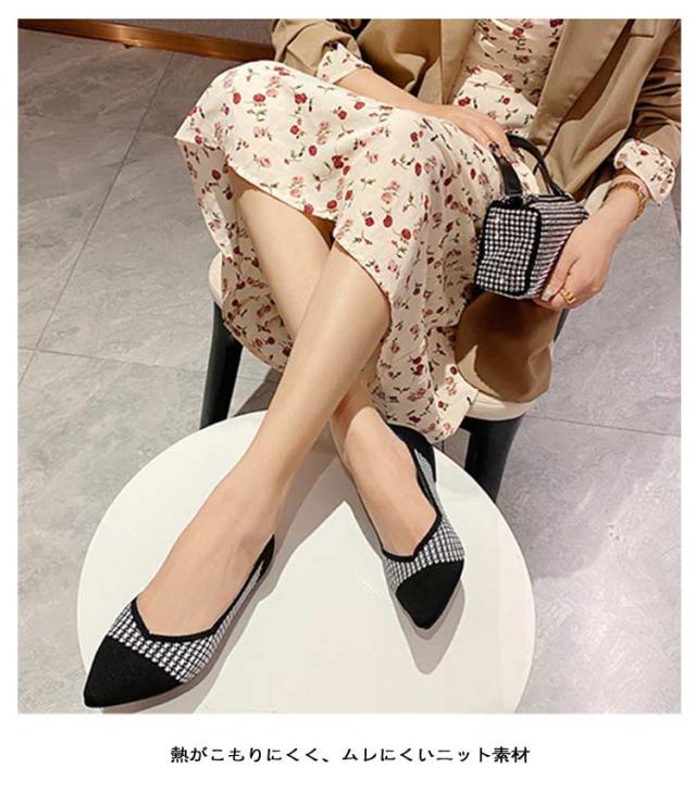 擦れしない 痛くない 幅広 ニットパンプス ぺたんこ ブラック オフィス 柔らかい 母の日 パンプス 靴 ニットパンプス フラットシューズ 走れる 外反母趾 甲高 レディース ポインテッドトゥ 黒 ローヒール 脱げない