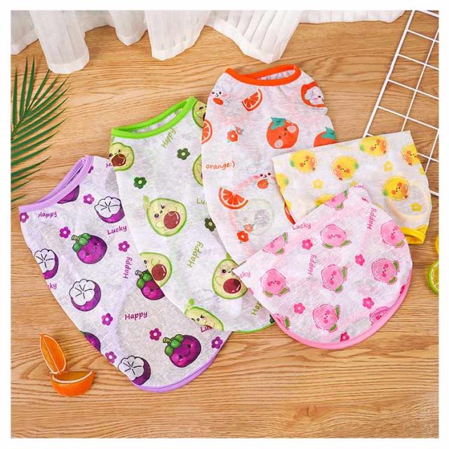 ドッグウェア キャットウェア 猫 ペット服 犬用ウェア 猫服 犬 ノースリーブ 犬の服 ペット用品 ペットウェア 犬服 ドッグウェア Tシャツ 猫の服 カットソー 袖なし タンクトップ 洋服 プリント カトゥーン柄 フルーツ お散歩 お出かけ