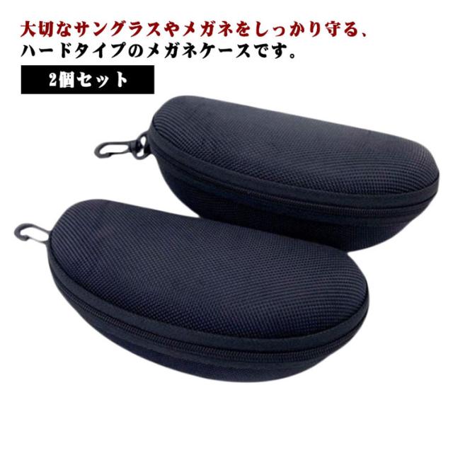 アウトドア メガネケース フック付き サングラスケース 無地 大型 ハードケース 2個セット スポーツ 大きめ 旅行 携帯 軽量 ファスナー付き