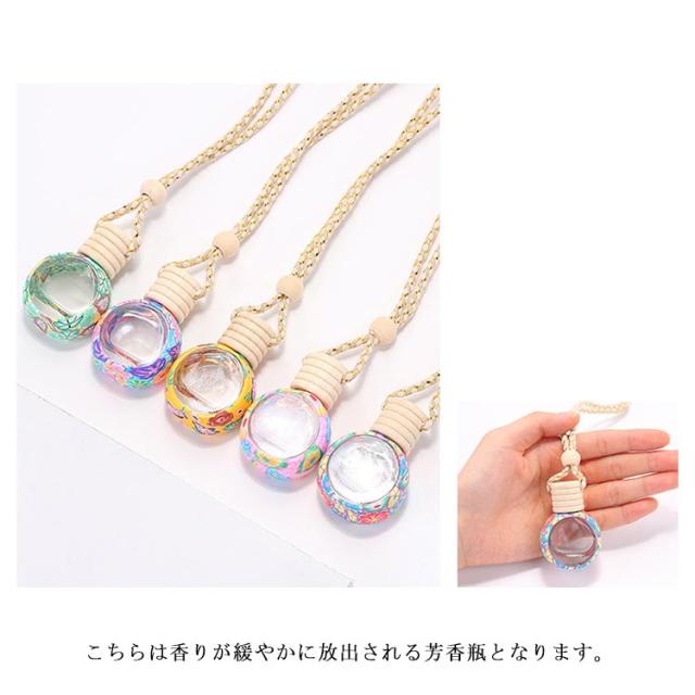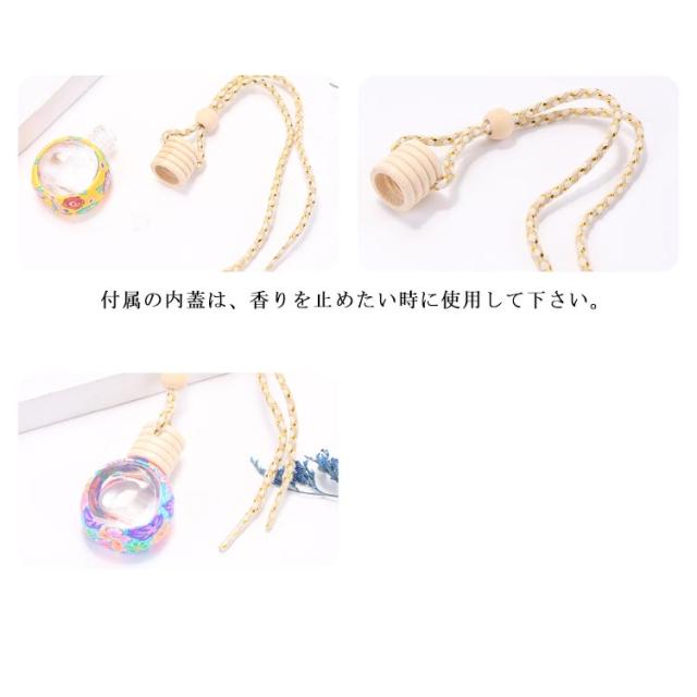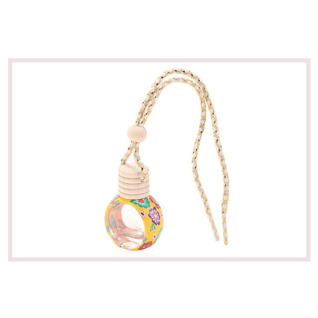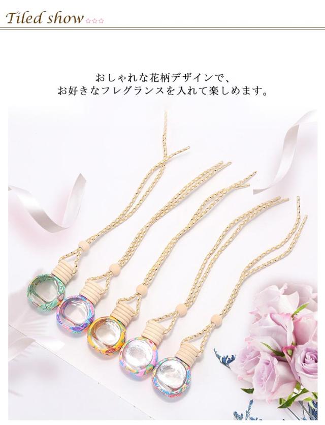 | 車用の吊り下げ式香水瓶です。 おしゃれな花柄デザインで、お好きなフレグランスを入れて楽しめます。 ※空瓶での販売です。フレグランスは付いておりません。 こちらは香りが緩やかに放出される芳香瓶となります。 付属の内蓋は、香りを止めたい時に使用して下さい。 逆さにしたり倒すと中身が漏れ出しますので、ご注意ください。 | |