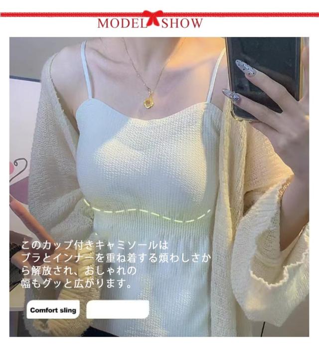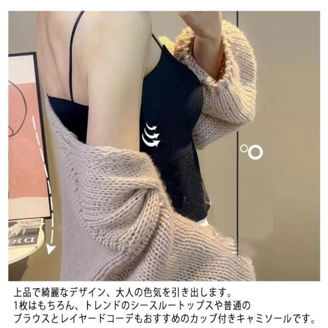 | 綺麗なバストをキープするカップ付きキャミソール。 このカップ付きキャミソールはブラとインナーを重ね着する煩わしさから解放され、おしゃれの幅もグッと広がります。 上品で綺麗なデザイン、大人の色気を引き出します。1枚はもちろん、トレンドのシースルートップスや普通のブラウスとレイヤードコーデもおすすめのカップ付きキャミソールです。 吸汗速乾機能付き高品質素材を使用。汗を素早く蒸発させ、ベタつきを防ぐ設計で、暑い日でもサラッとした着心地を実現しました。理想的なキャミソールに間違いありません 体にフィットしながらも締め付け感ないストレッチ素材を採用し、細い肩紐がスタイリッシュでおしゃれ度アップ。 シンプルなデザインで、年齢を選ばず、通勤OLから主婦まで全部似合ってる。ルームウェアや ヨガ フィットネス などの運動用としてもおすすめです。 | |