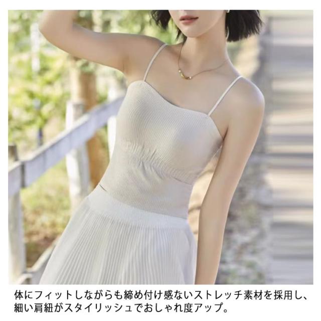 体型カバー キャミソール 盛れる シャーリング キャミソール 丸紐 インナー ベアトップ 快適ヨガウェア レディース キャミソール 部屋着 リブ フレア 下着 ニットソー 高弾性 細身効果 重ね着 レイヤード