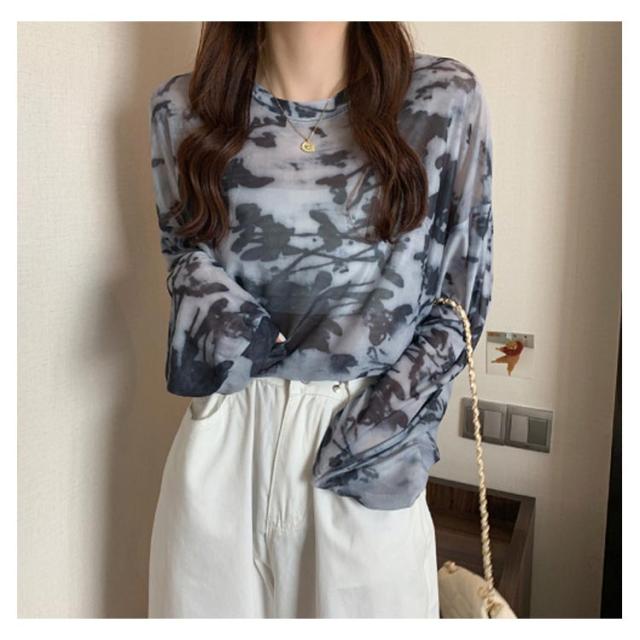 ビッグシルエット 【2枚セット】 タイダイ柄シアーシャツ シアートップス 長袖 透け感 シースルー Tシャツ 大きいサイズ 【2枚セット】 クルーネック シアーブラウス カットソー レイヤードトップス