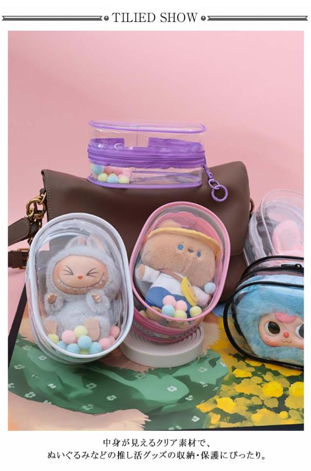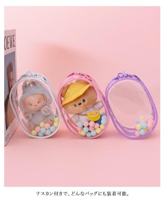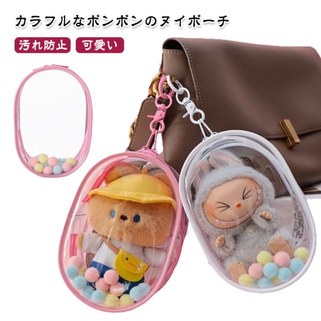 推し活 痛バ ぬいポーチ 痛バッグ 小さめ ぬいぐるみ ケース クリアポーチ ミニ 透明 15cm ぬいぐるみポーチ バッグ キャラ オタク 防水 人形入れ ぬい ナスカン付き カラフルポンポン 見せバッグ オタ活 推し 送料無料 フィギュア プレゼント 贈り物