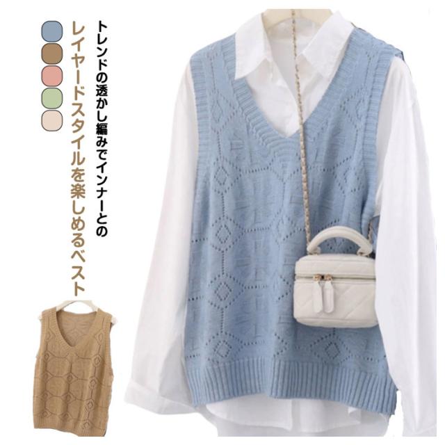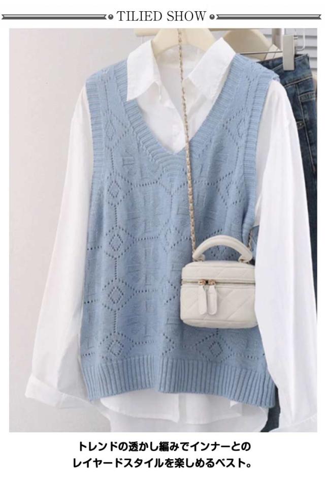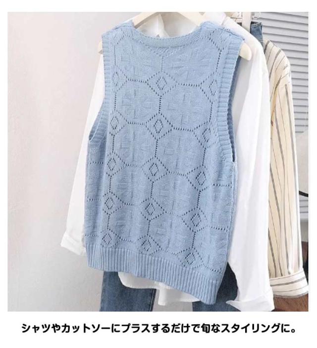 トップス レディース カジュアル Vネック トップス 春 クロシェ編み かぎ編み 透かし編み ベスト カジュアル 無地 プルオーバー ニットベスト レイヤード きれいめ ベスト フェミニン 送料無料 無地 薄地 大人かわいい アウター 可愛い