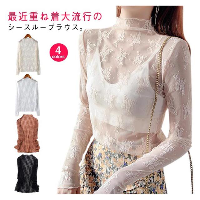 シースルー ブラウス 春 トップス 重ね着 シースルー 無地 カットソー レース 大人 レディース 肌見せ セクシー フェミニン インナー シースルーブラウス セクシー 長袖 可愛い 透け 夏 秋 冬 普段着 おしゃれ 20代 30代