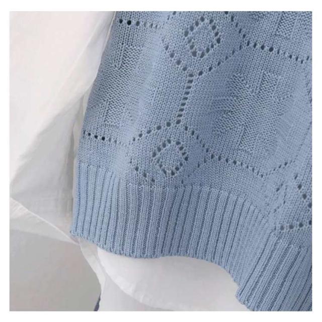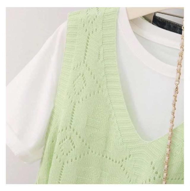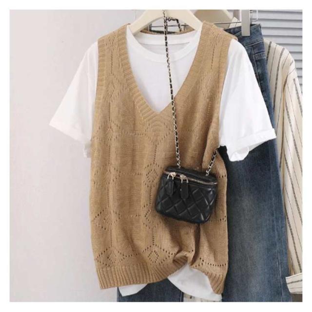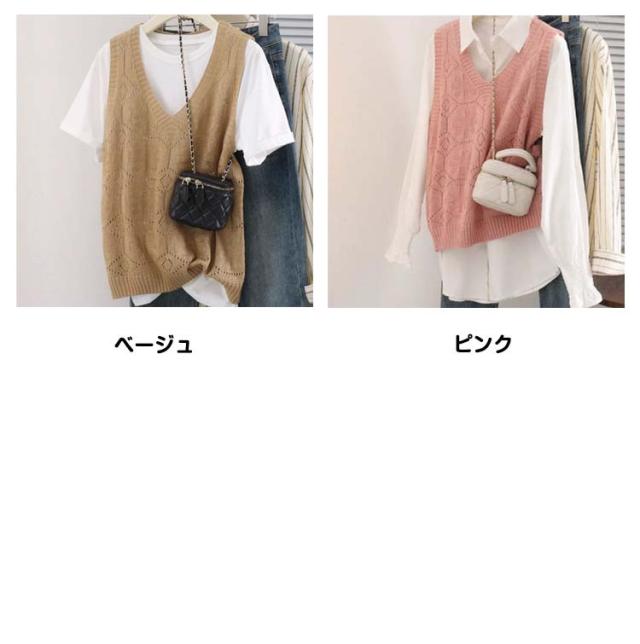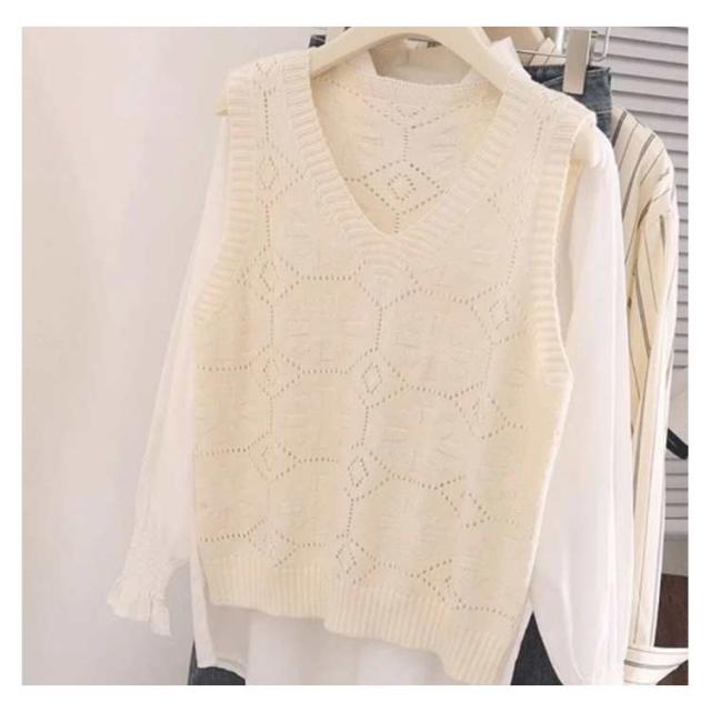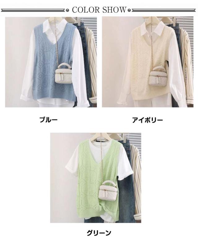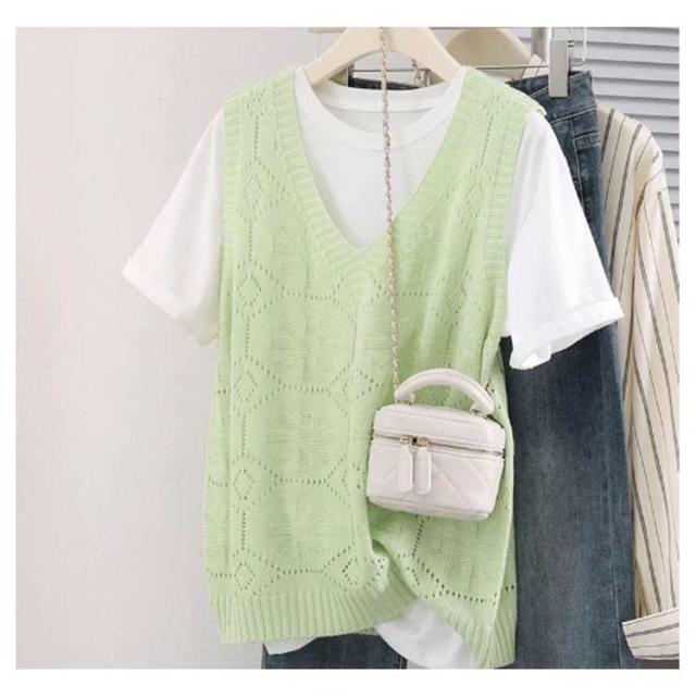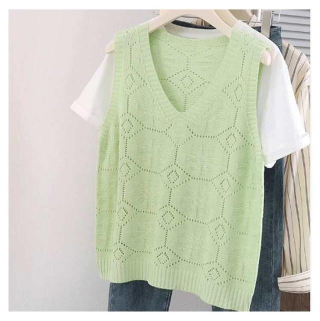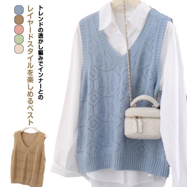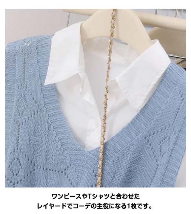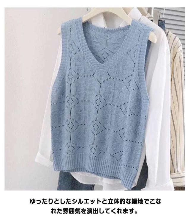 ニットベスト カジュアル トップス 無地 Vネック ベスト プルオーバー クロシェ編み 透かし編み 送料無料 かぎ編み ベスト レイヤード レディース トップス きれいめ 夏 フェミニン 春 無地 薄地 大人かわいい アウター 可愛い