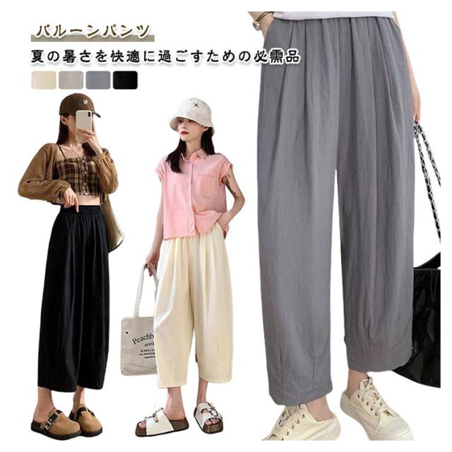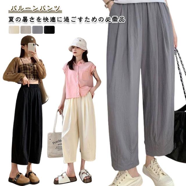 レディース ハイウエスト バルーンパンツ イージーパンツ バルーンパンツ ワイドパンツ サルエルパンツ 春 夏 カジュアル ロングパンツ ハロンパンツ コクーンパンツ ウエストゴム ボトムス 8分丈 ロング丈パンツ ゆったり 薄手 お洒落 部屋着
