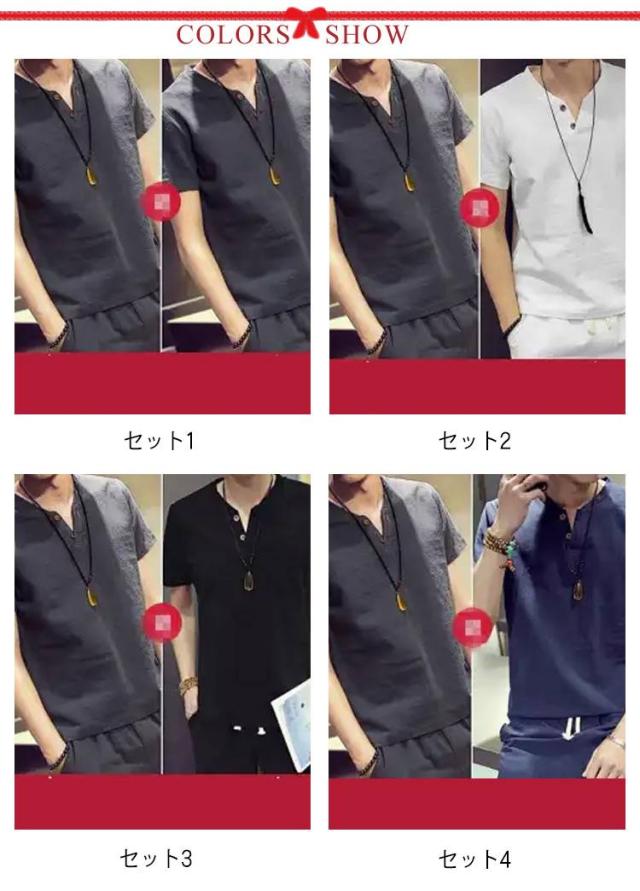 リネンシャツ 麻混 メンズ 麻 中国風 リネンシャツ ヘンリーネック 2枚組 VネックTシャツ 半袖 メンズ 麻Tシャツ 中華風トップス チャイナ風Tシャツ 夏用 春夏 通気性 涼しい 快適 父の日 プレゼント