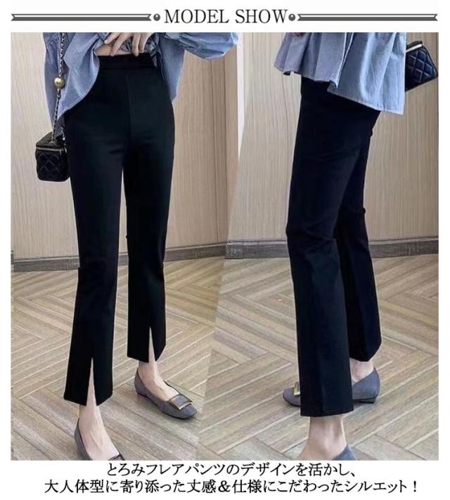 フレアパンツ レディース 9分丈パンツ ハイウエスト スリットパンツ 涼しい ロングパンツ ボトムス 前スリット サイドスリット ハイウエス クロップドパンツ セレモニー 着痩せ 美脚 楽ちん きれいめ 春夏 通勤 オフィス 大きいサイズ 母の日 ギフト