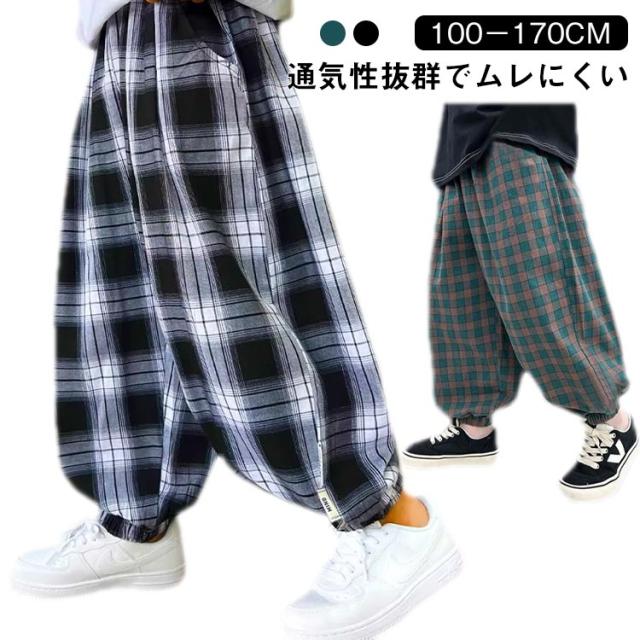 ロングパンツ キッズパンツ キッズ 防蚊パンツ チェック柄 カジュアルパンツ 男の子 裾ゴム ワイドパンツ 子供 キッズ 薄手 ゆったり 通気性 100 110 120 130 140 150 160 170