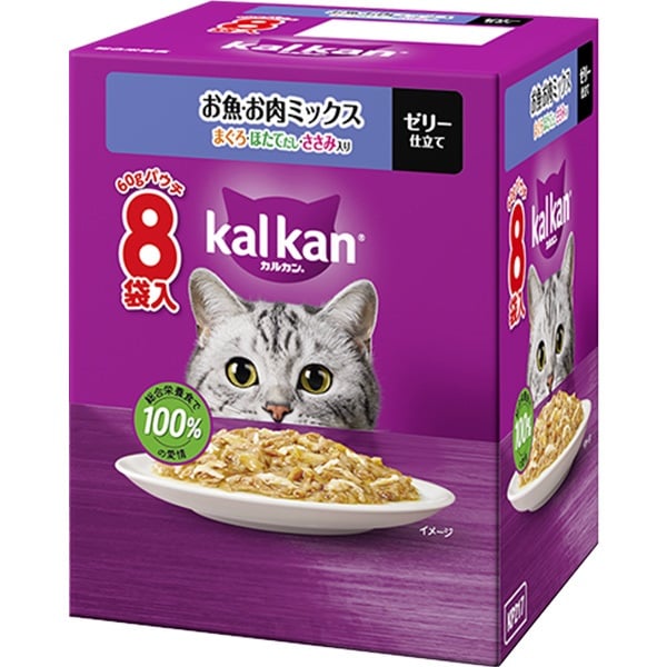 【SALE】カルカン パウチ ゼリー仕立て お魚・お肉ミックス まぐろ・ほたてだし・ささみ入り 60g×8袋入