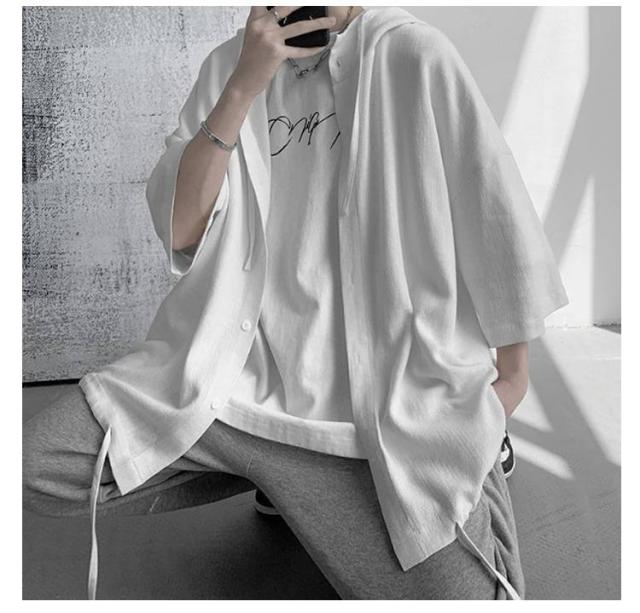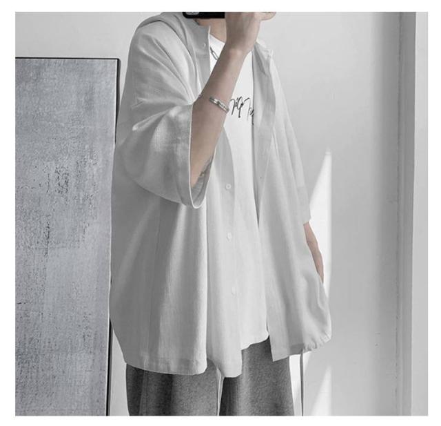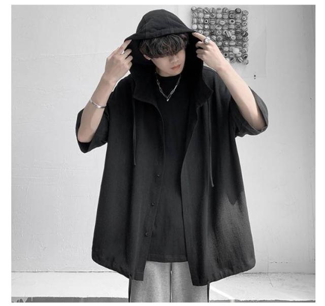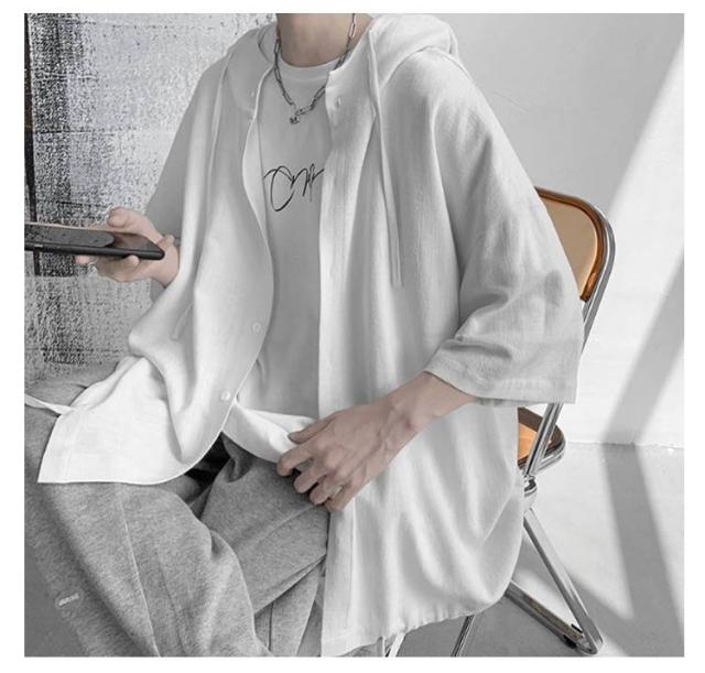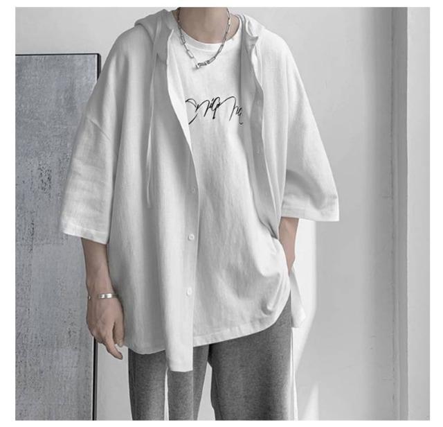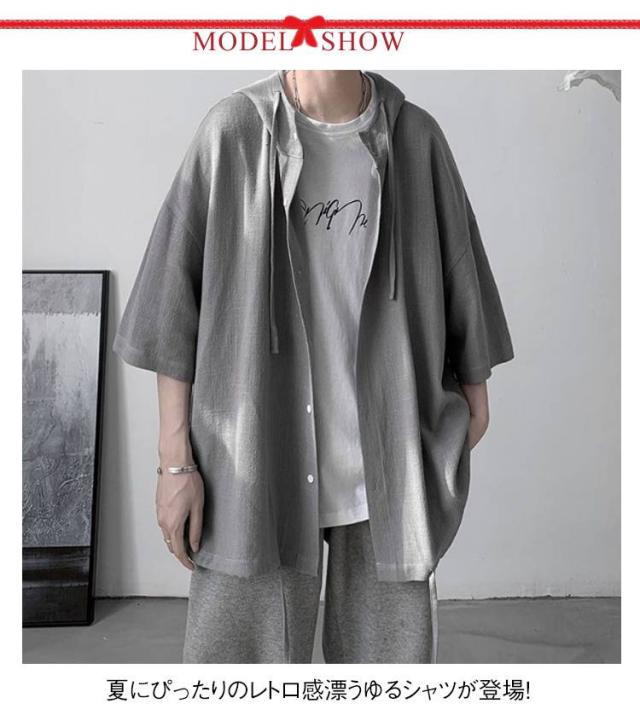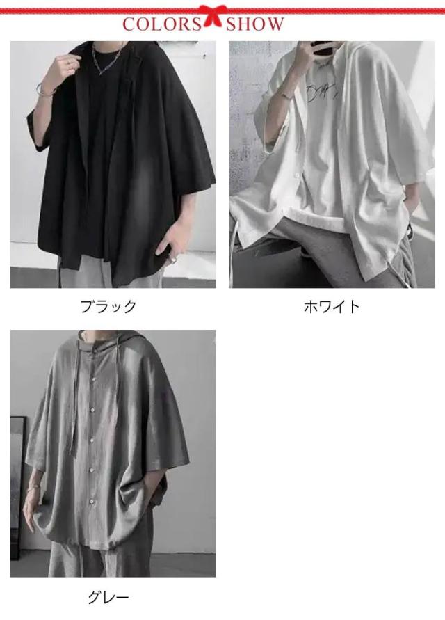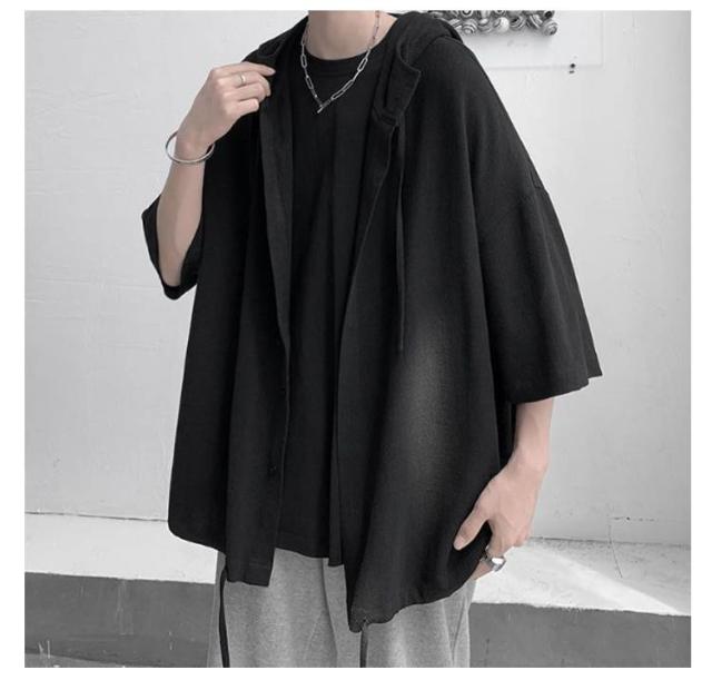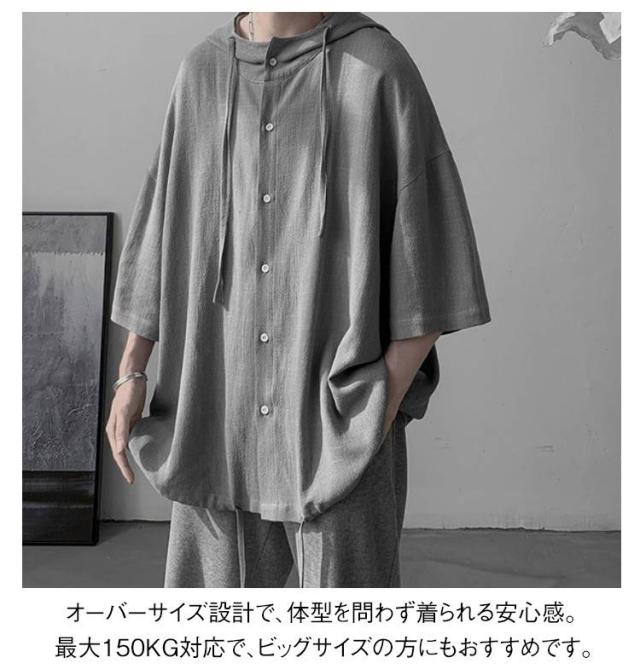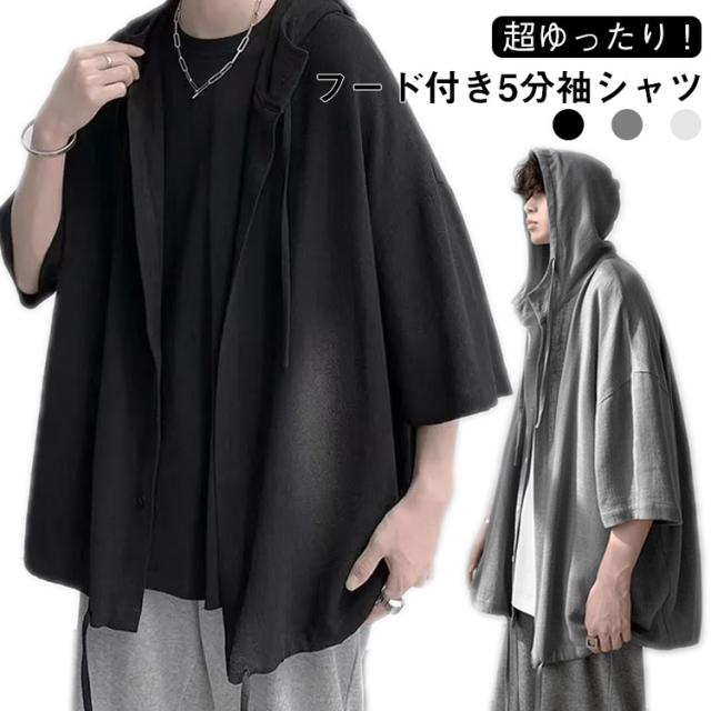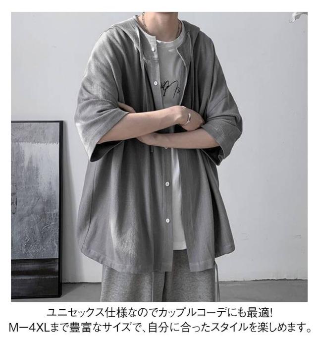 男女兼用 ゆったりシャツ ビッグシルエット パーカー ゆったりシャツ サマーカーディガン シャツ 半袖シャツ 5分袖 大きサイズ 夏服