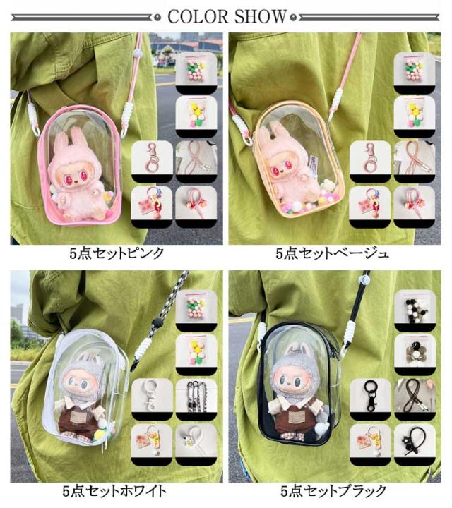 | 5点セット! ショルダーバッグ、ポーチ、ぬいぐるみ、見せバッグなど、様々なスタイルでお楽しみいただける小さめミニサイズのバッグです。 痛バや推し活、オタ活にぴったりのアイテムとなっており、缶バッチやぬいぐるみなど、お好きなアクセサリーを自由にコーディネートできます。 おしゃれな透明デザインで、大切な小物やお気に入りのアイテムを一目で確認できるのも嬉しいポイントです。 | |