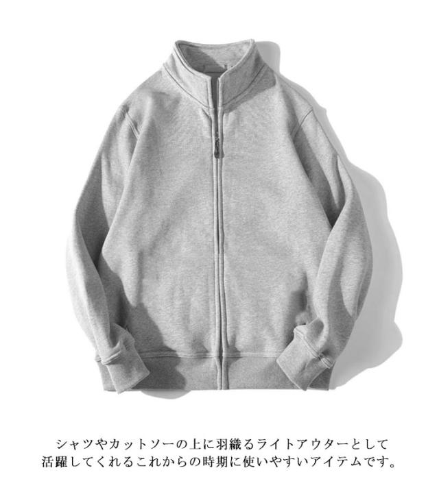 | M-4XL!秋冬から春先まで活躍できるフルジップの立ち襟トレーナー。 シンプルなデザインなので幅広いシーンで活躍するアイテムです♪ すっきりとした着丈とシルエットで合わせやすい一枚です。 シャツやカットソーの上に羽織るライトアウターとして活躍してくれるこれからの時期に使いやすいアイテムです。 1枚で着用しても、ジャケットなどのインナーとしても、ロングシーズン重宝してくれます。 | |