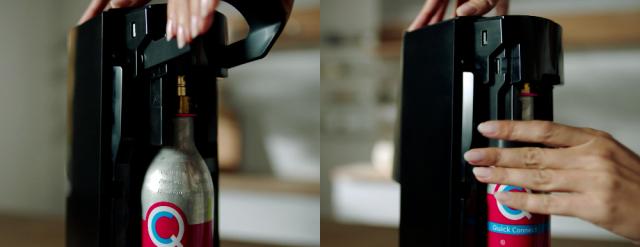 手軽にボトルが装着できる「スナップ・ロック」をはじめ、丸いボタンをプッシュするだけのシンプルな操作で、慣れない方でも、直感的な手軽さで楽しくおいしい炭酸水を作ることができます。