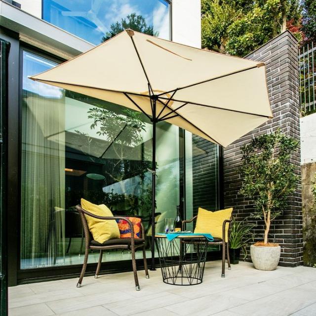 ■商品名:【突っ張り式】日除け・雨除けパラソル(3M半円形)パラシェード ハーフ 紫外線カット 工事不要 テラス・ガーデンパラソル グレー