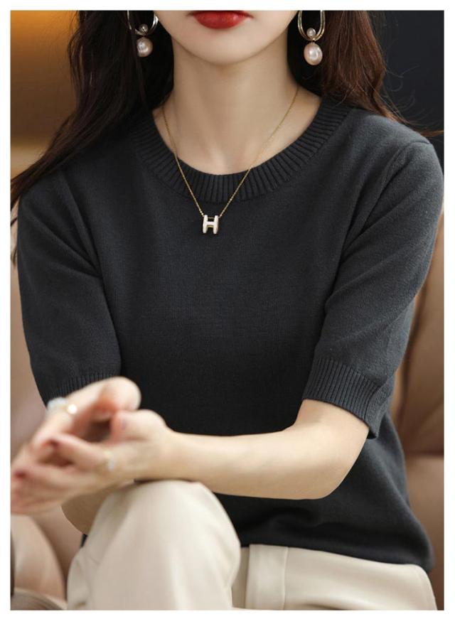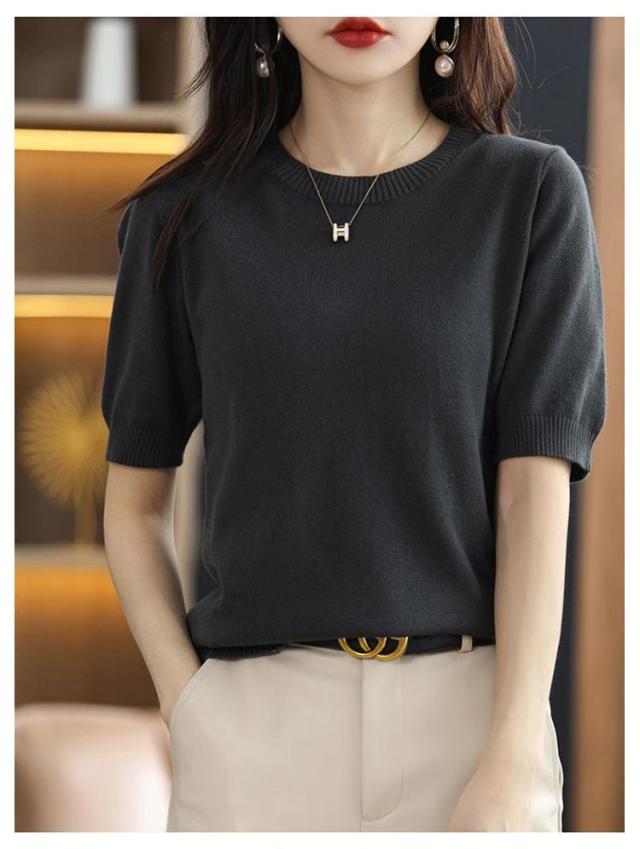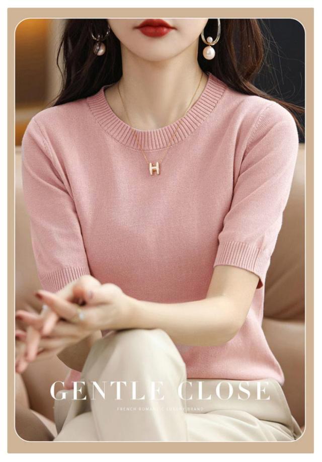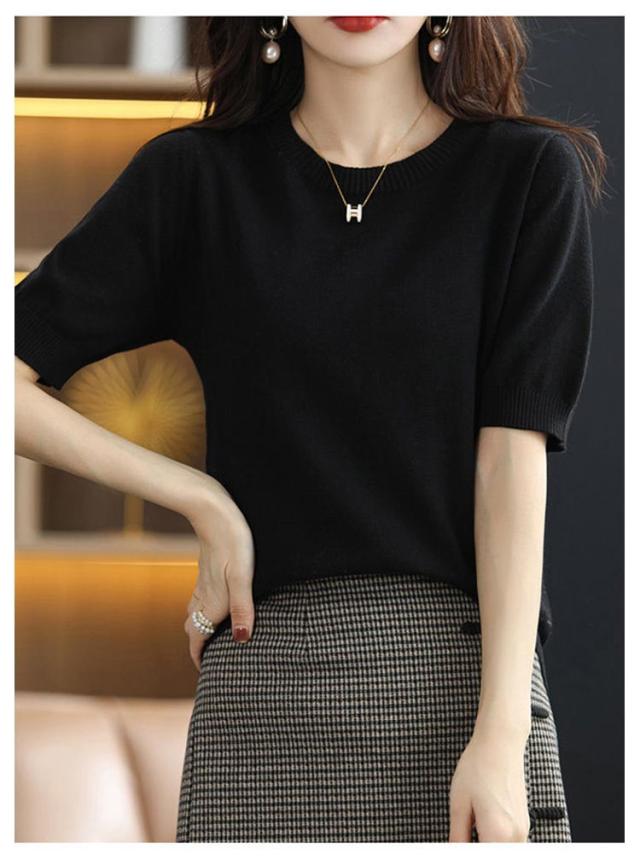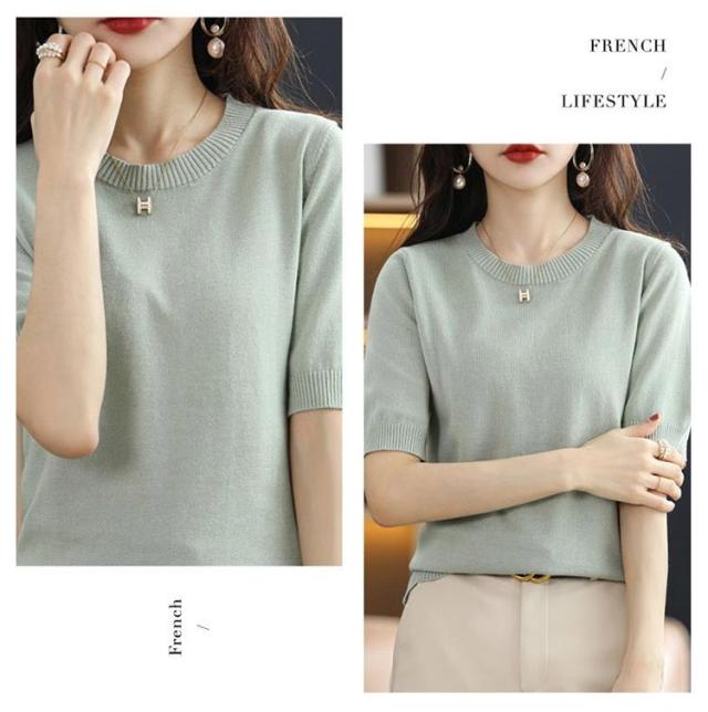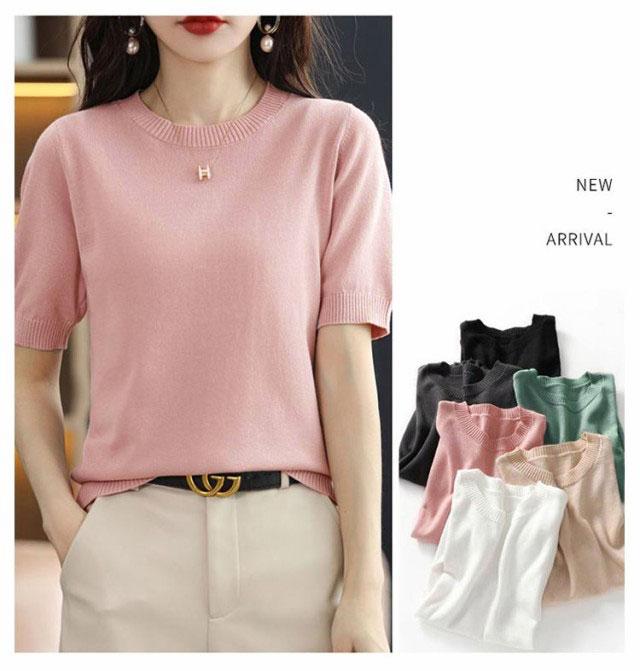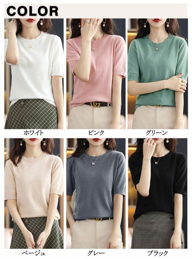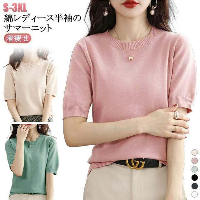 夏 おしゃれ ニット 洗える 半袖 送料無料 半袖ニット クルーネック トップス 薄手 綿 レディース プルオーバー ビジネス ニットtシャツ かわいい サマーニット カジュアル カットソー 無地 インナー きれいめ オフィス ニットソー カジュアル 冷房対策 着痩せ