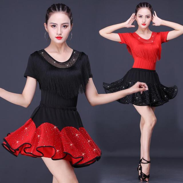 セットアップ レディース Tシャツ スパンコール スカート フリンジ ラテンダンスウェア 発表会 学園祭 部活 ライブ 公演 舞台衣装 イベント 女子服 上下セット