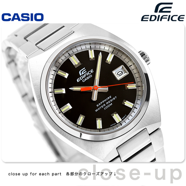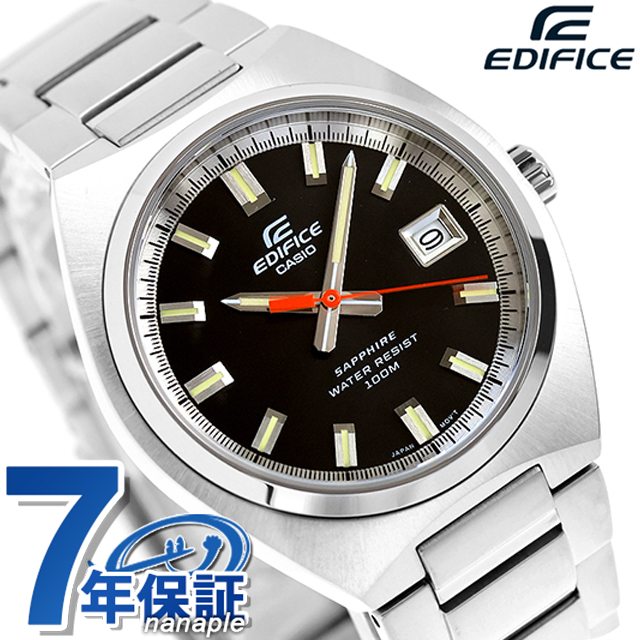 7年保証キャンペーン エディフィス EDIFICE クォーツ 電池式 海外モデル クォーツ 電池式 メンズ 腕時計 EFB-109D-1AVDF 3-Hand Analog アナログ ブラック ◆クラシックスポーツカーからインスピレーションを得た、時針、分針、秒針のデザインを採用した、EDIFICEモータースポーツアナログ時計。細身のミラー仕上げベゼルと、放射状のヘアライン仕上げが特徴のラウンド型ステンレススチールケースが、クラシックな外観と重厚感を兼ね備えたユニークな組み合わせを生み出しています。文字盤は、鮮やかな光沢のあるブラックを採用し、秒針にレッドのアクセントが効いています。しっかりとしたステンレススチールバンド、サファイアクリスタル、100メートル防水性能を備え、どんな状況にも対応できます。カジュアルな場からビジネスミーティングまで、ユニークなスタイルで瞬時にあなたを導きます。 日本未発売モデル