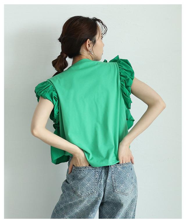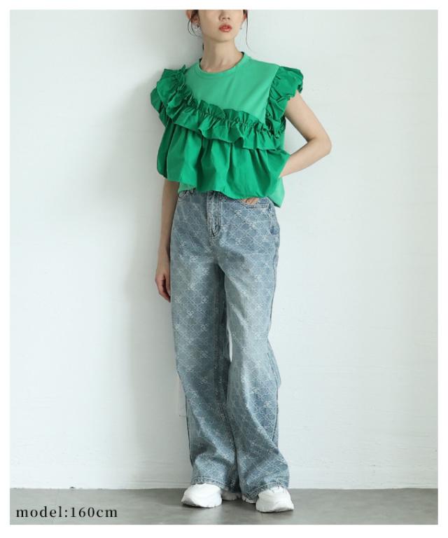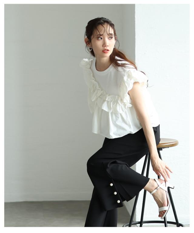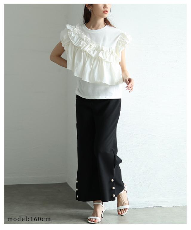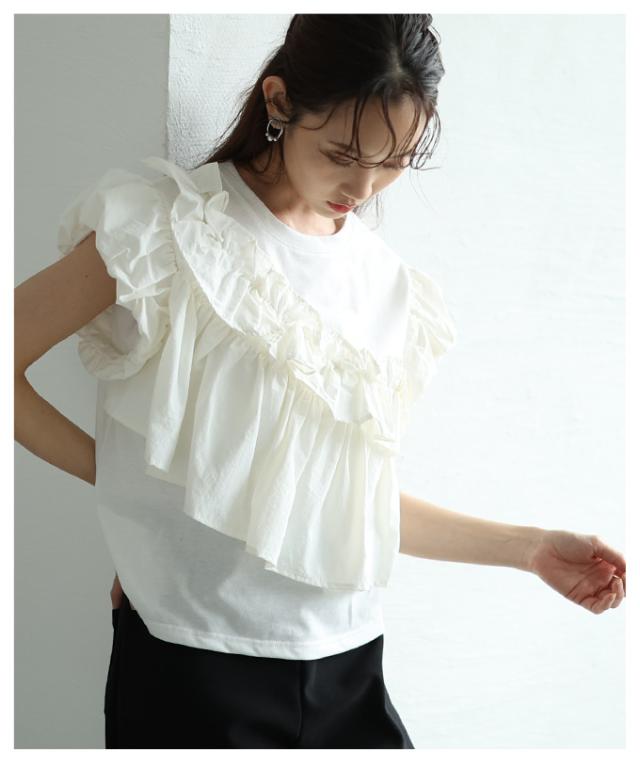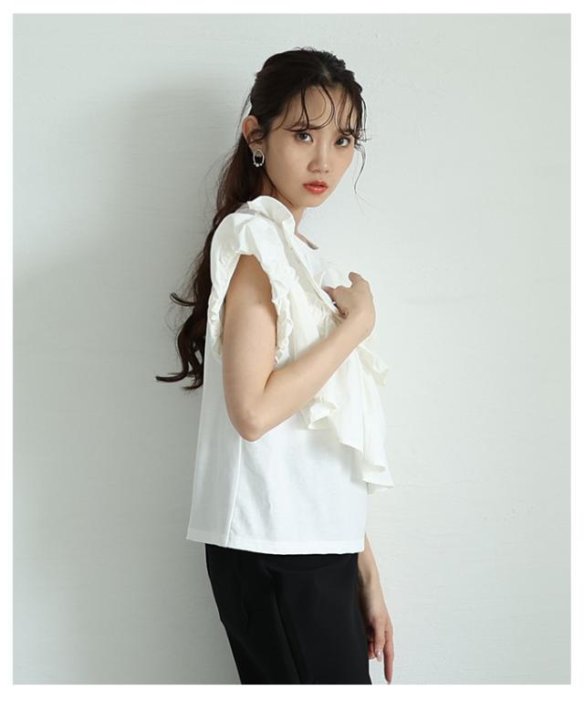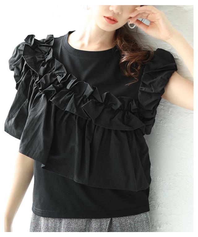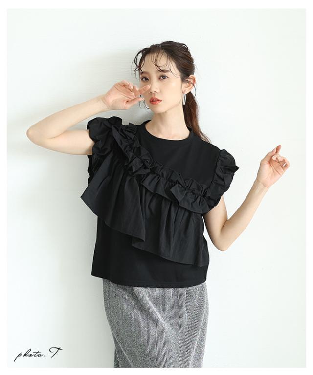 春新作 フリルがオーラを放つアシメデザインカットプルオーバー レディース ファッション トップス カットソー 半袖 夏 夏服 大人可愛い 20代 30代 40代 レディースファッション カジュアル 体型カバー おしゃれ きれいめ ママ サワアラモード sawaalamode almam-193940
