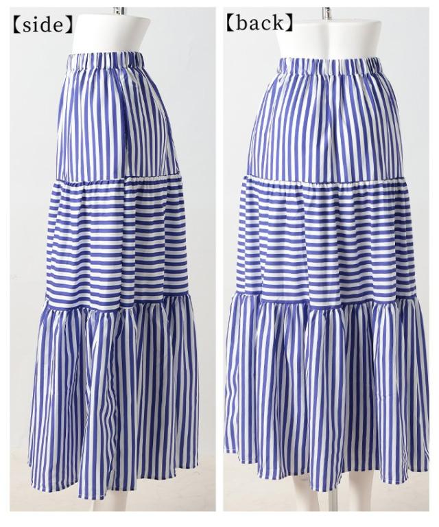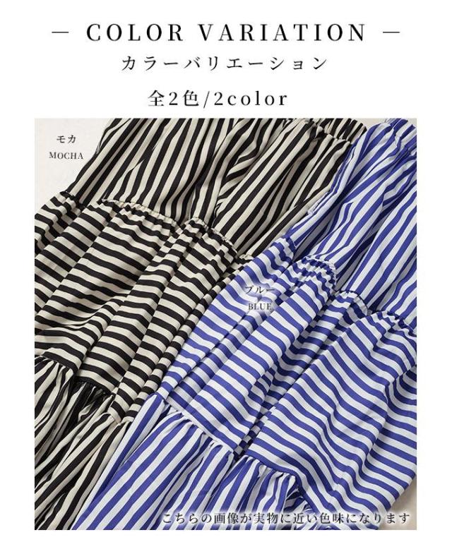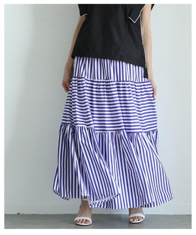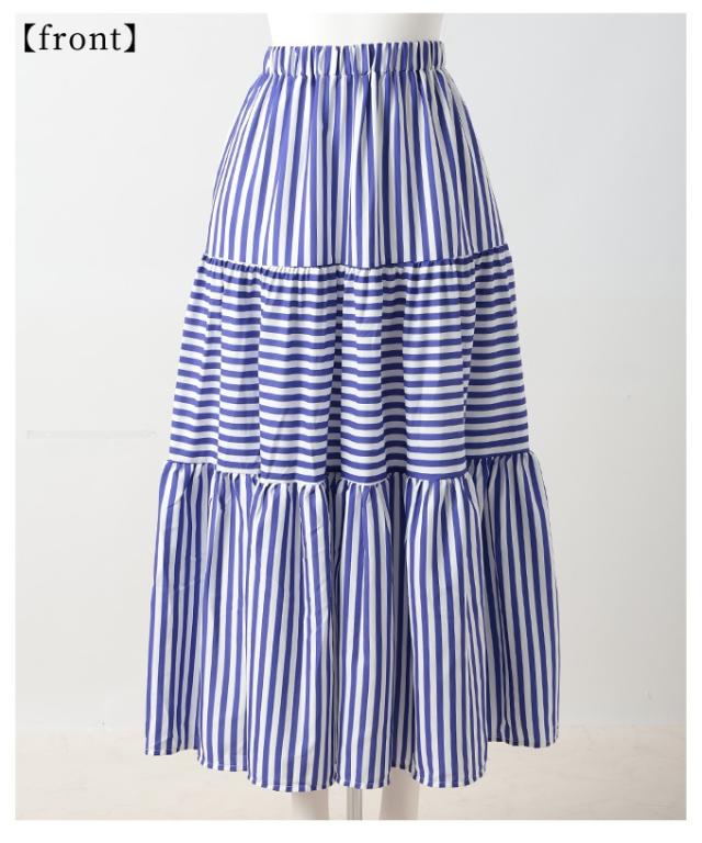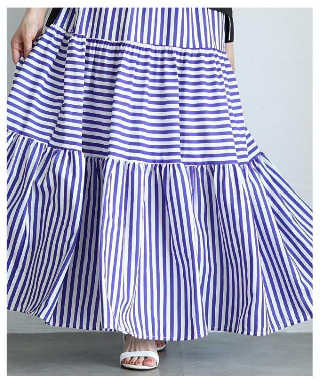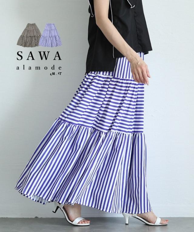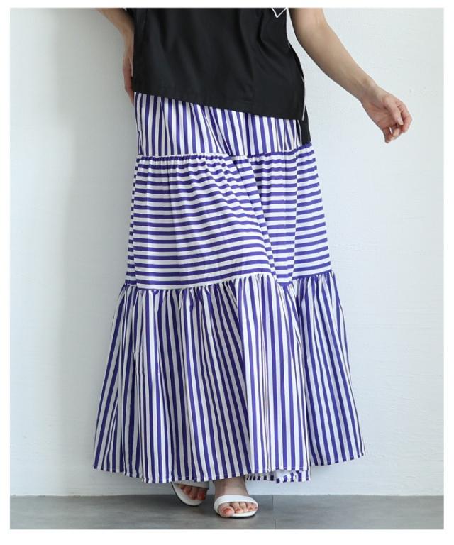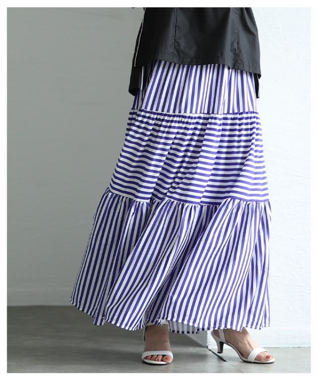 春新作 廃りないトレンドを重ねる切替ボーダーティアードスカート レディース ファッション スカート ティアード ボーダー ストライプ ロング フレア 茶色 青 30代 40代 50代 60代 サワアラモード sawaalamode otona 大人 cawaii 可愛い 洋服 かわいい服 mode-9938