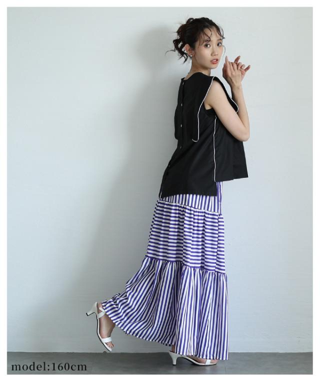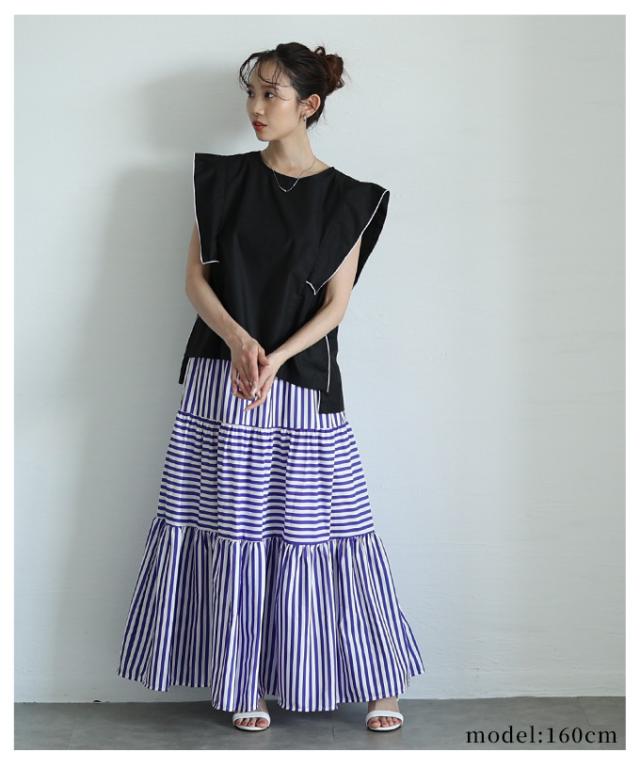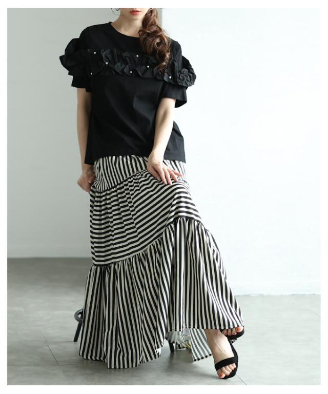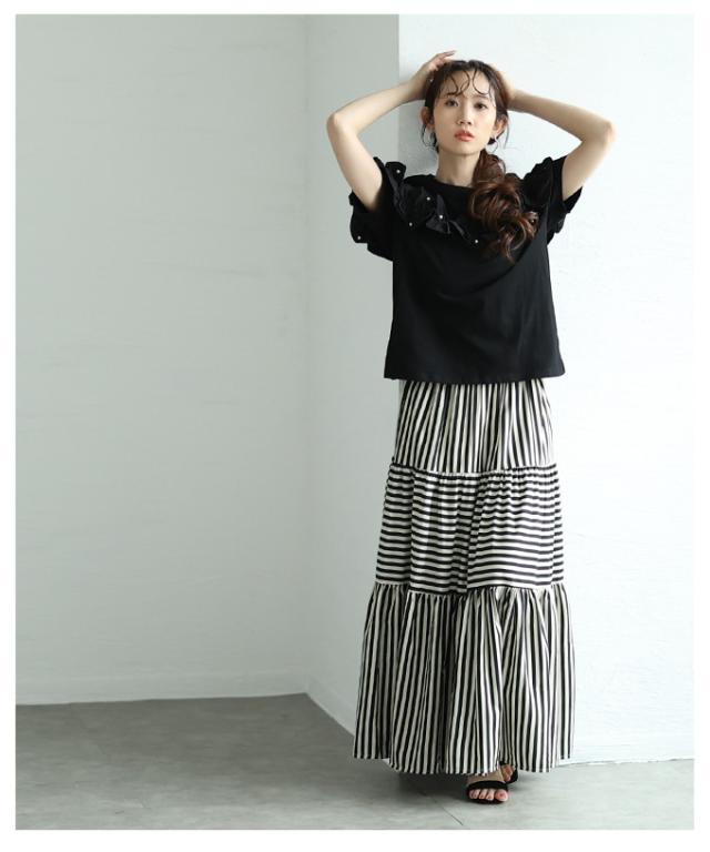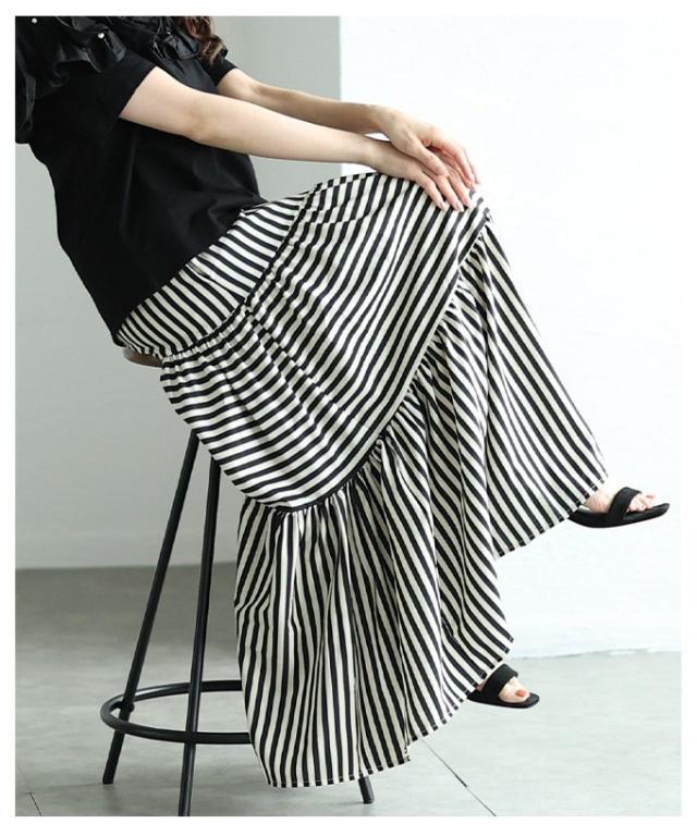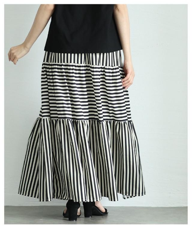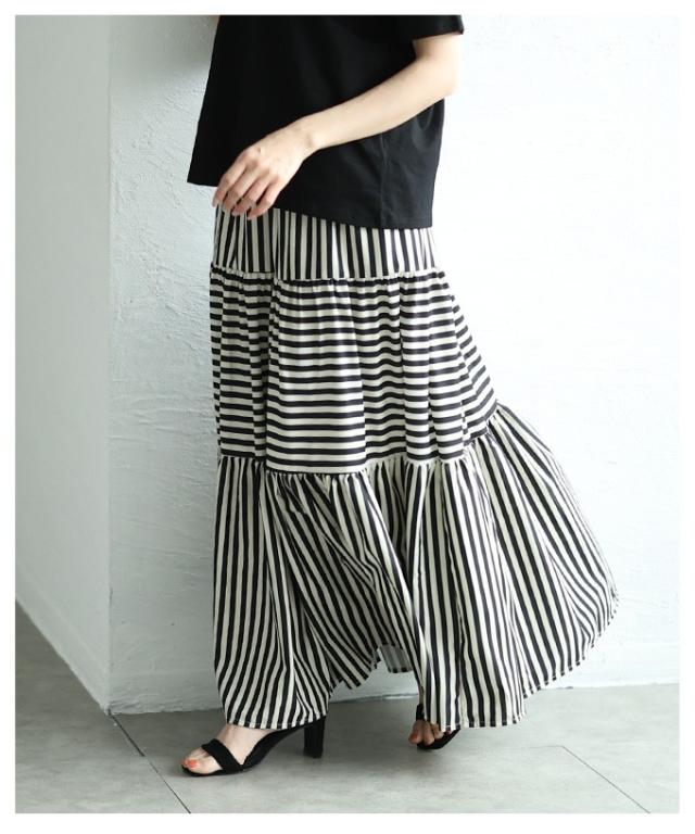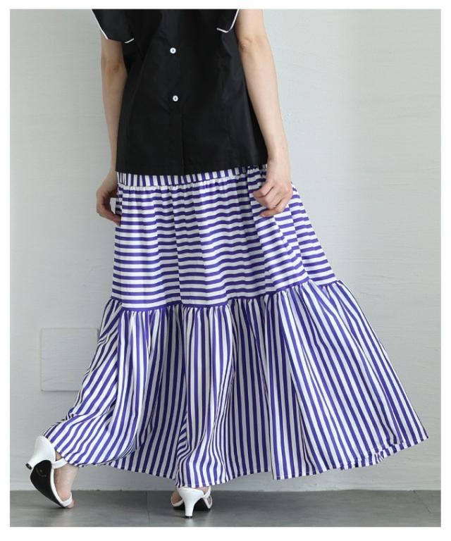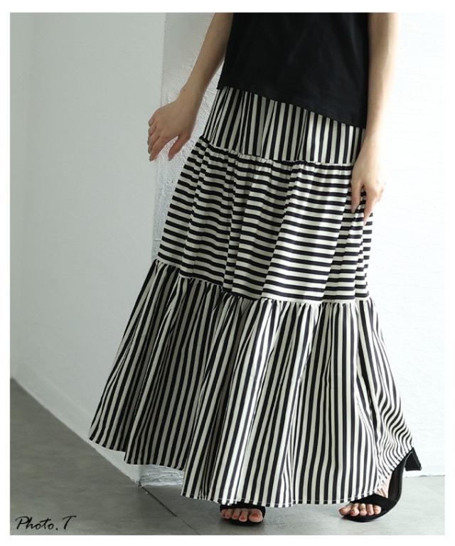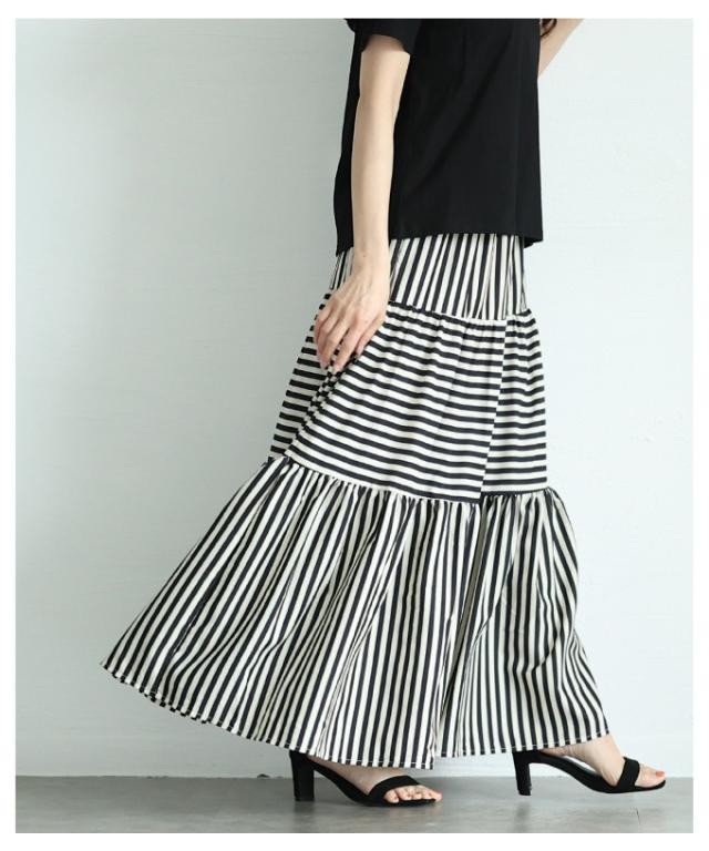商品名: トレンドを重ねる切替ボーダーティアードスカート